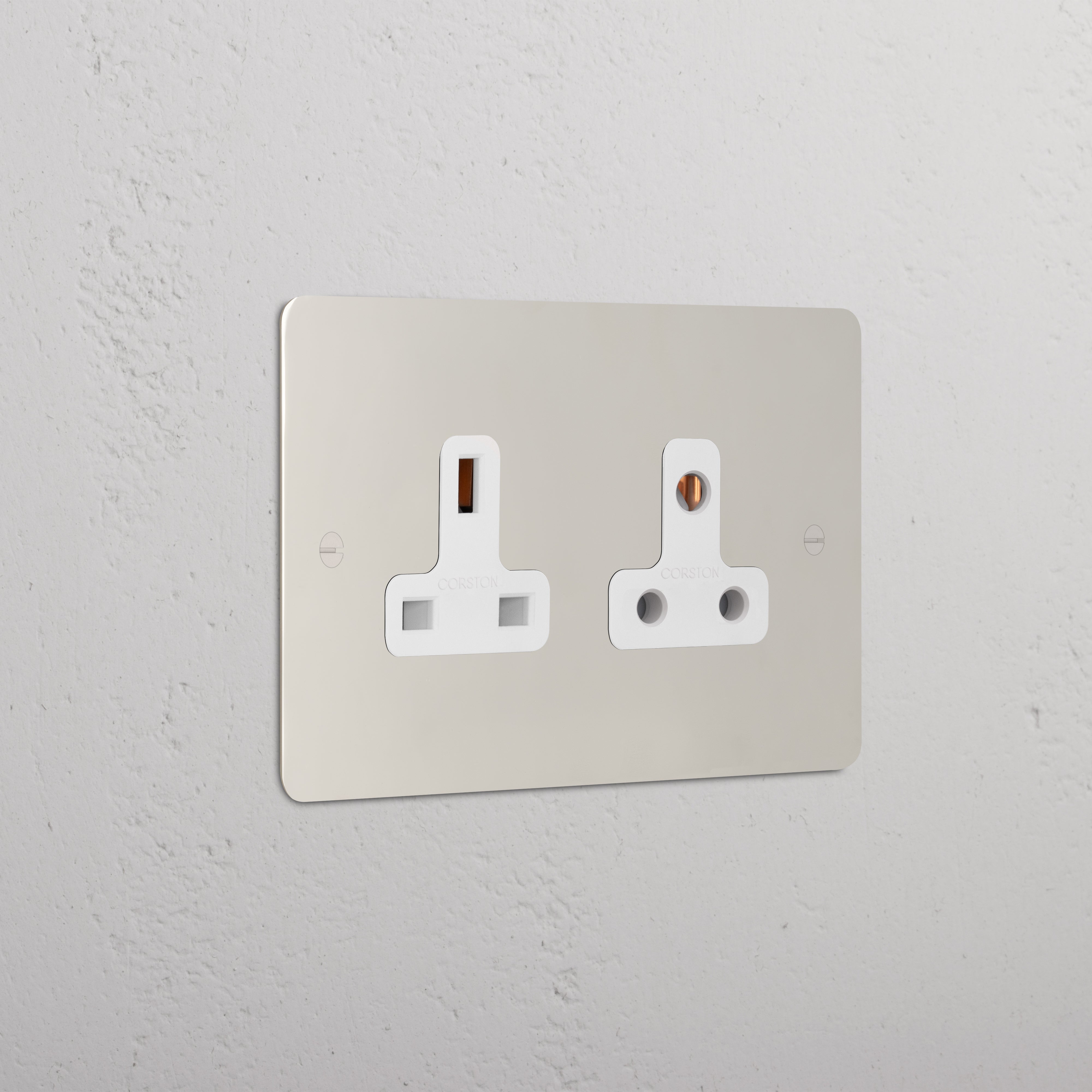 This double mixed socket combines a 13A and 5A unswitched socket on one plate.