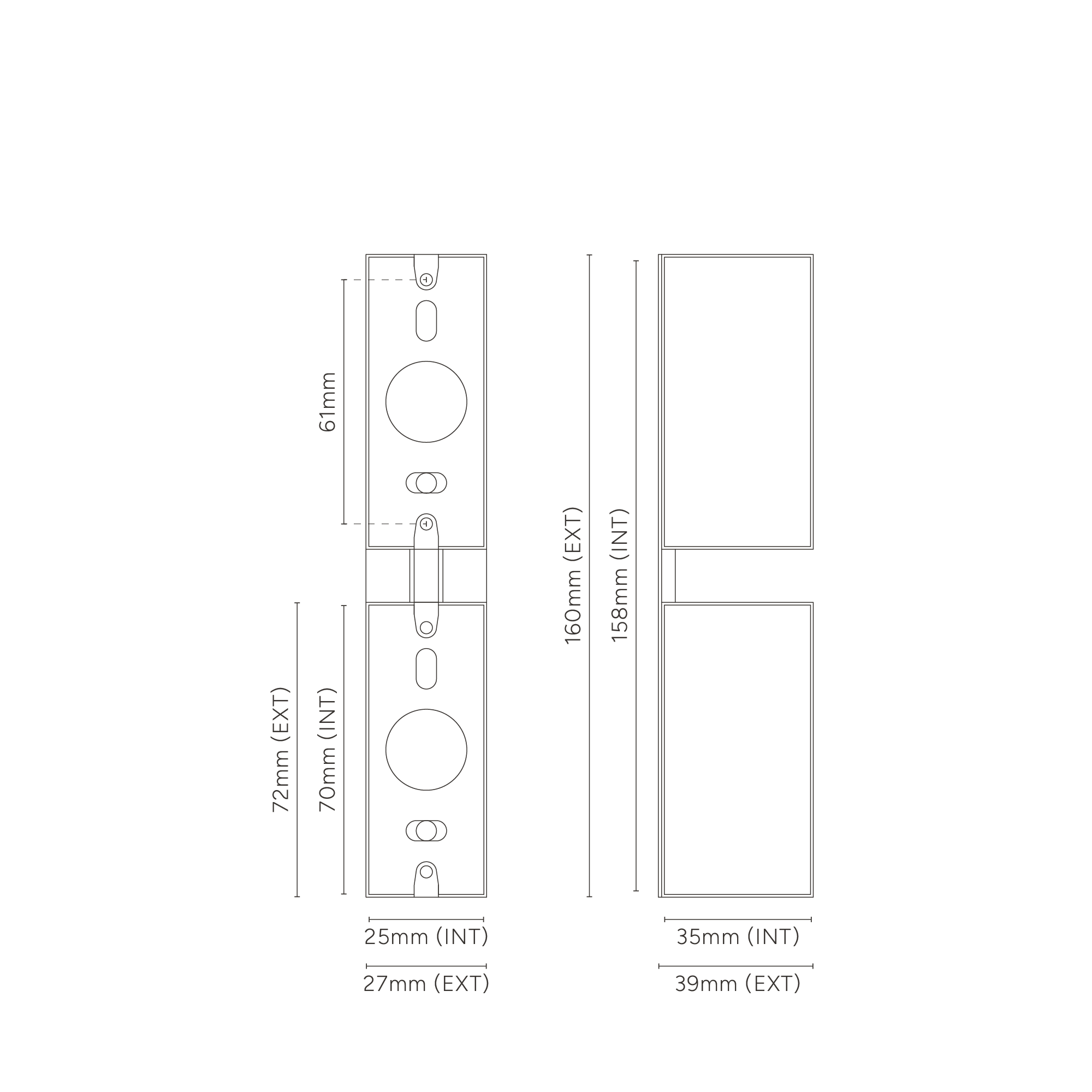 All Corston switches and sockets require a back box with a minimum depth of 35-47mm. It's the only way you'll achieve a flush finish. Our 6G and 8G switches must be used with a Corston double metal back box. because of the bespoke size.