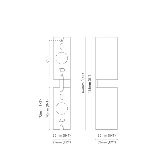 All our switches and sockets must be fitted with back boxes that are at least 35mm in depth. Our rocker switches and our 6G and 8G light switches must be fitted with our bespoke 47mm back boxes to ensure the flush fit of our plates.