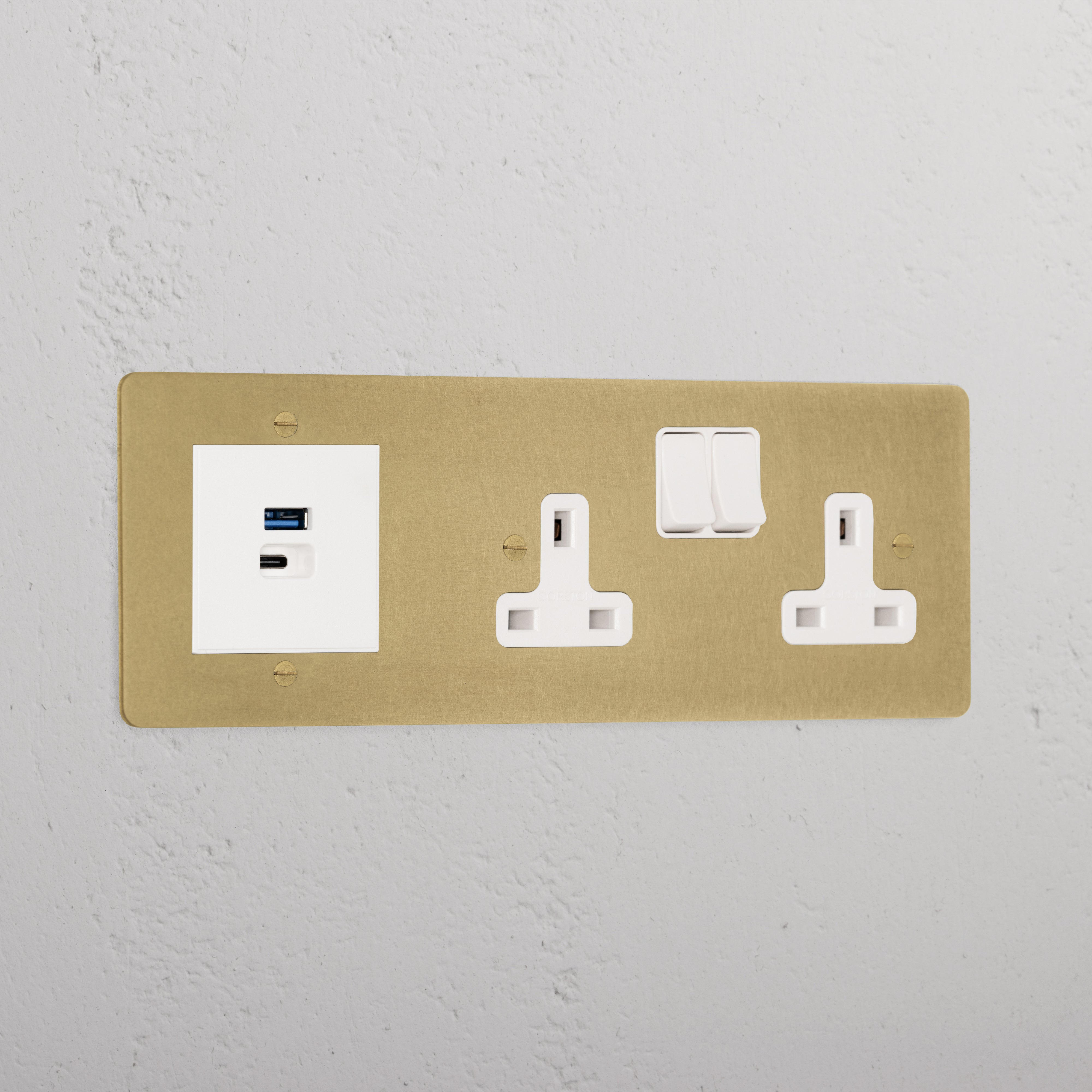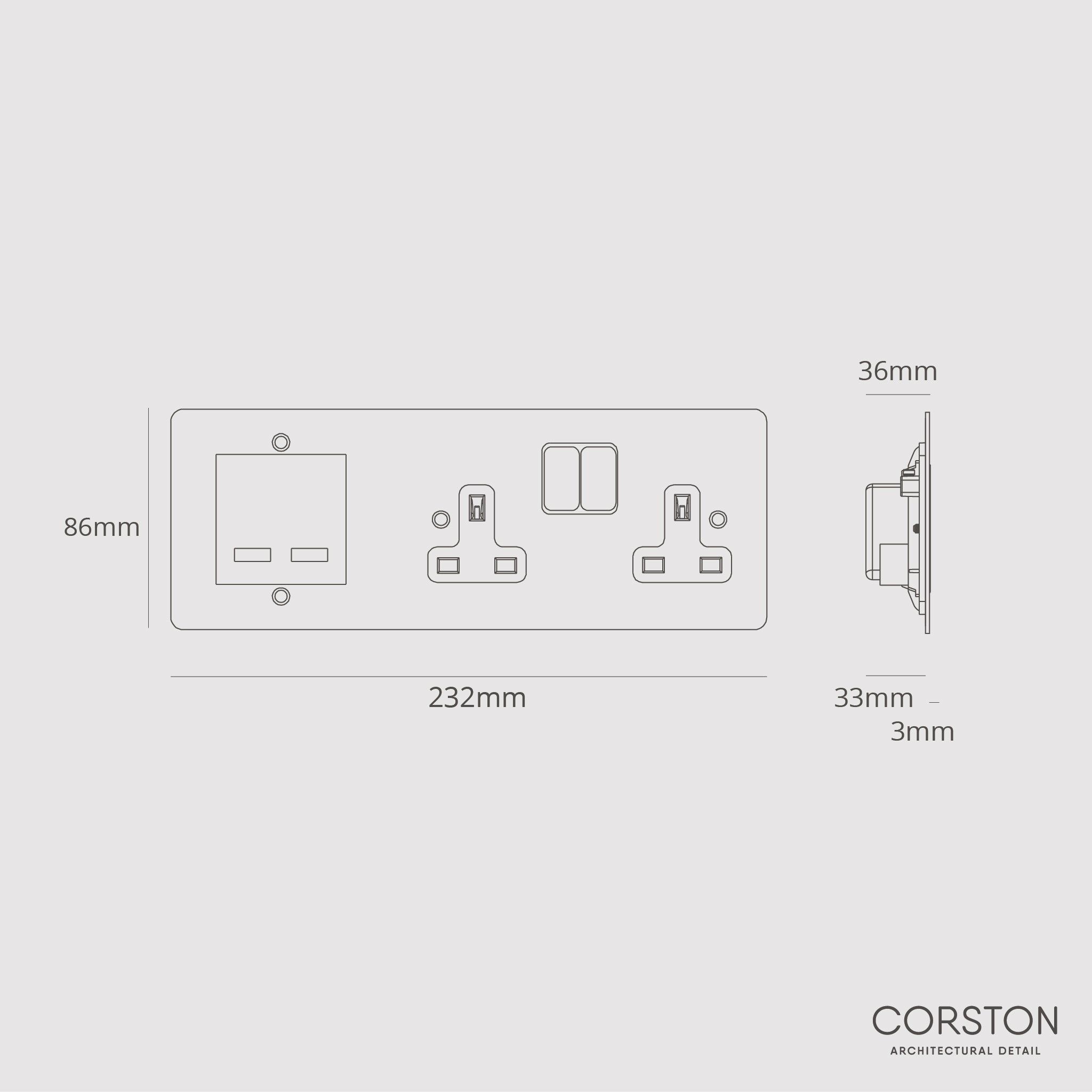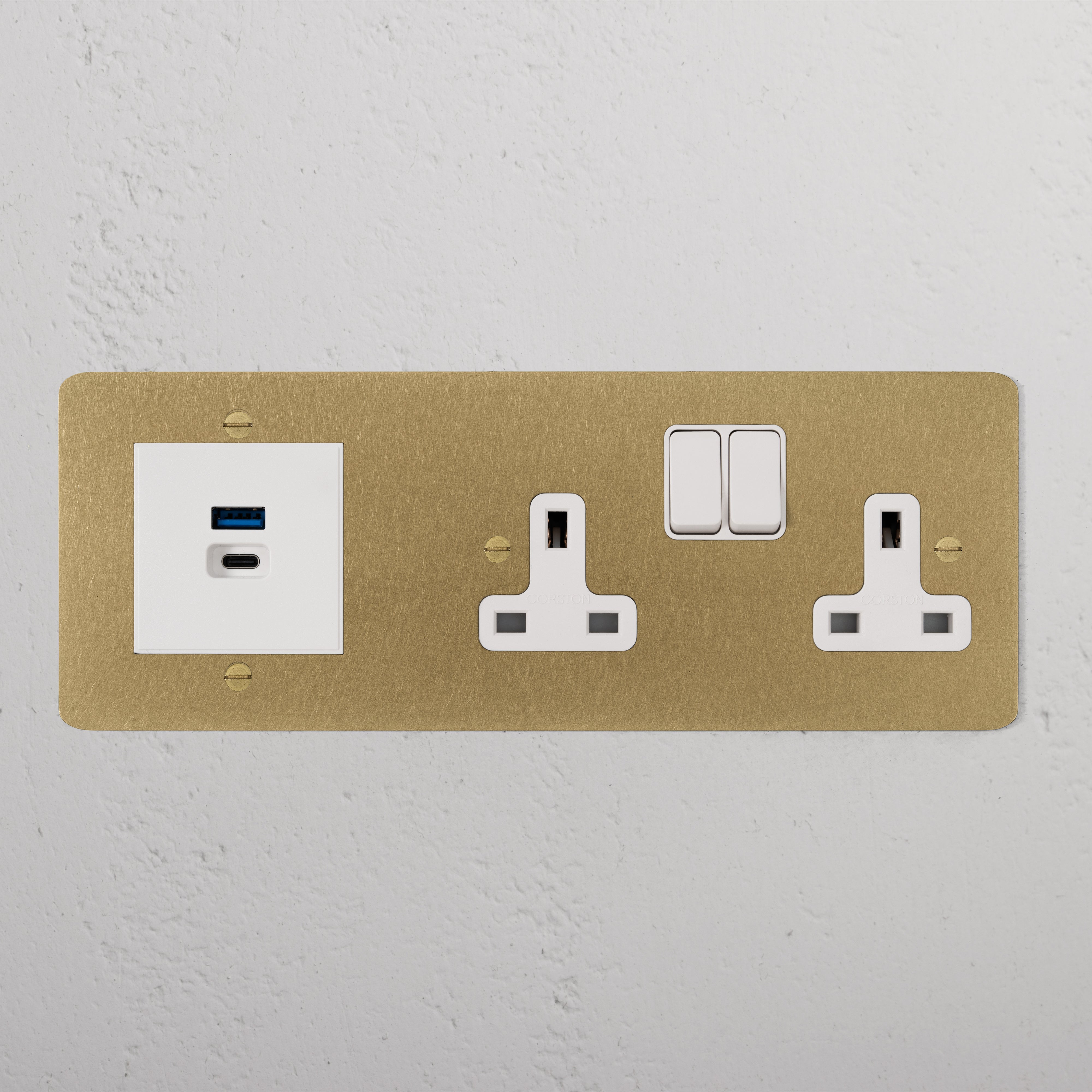 This triple mixed socket combines a two standard UK sockets and a dual USB-A+C socket on one plate.