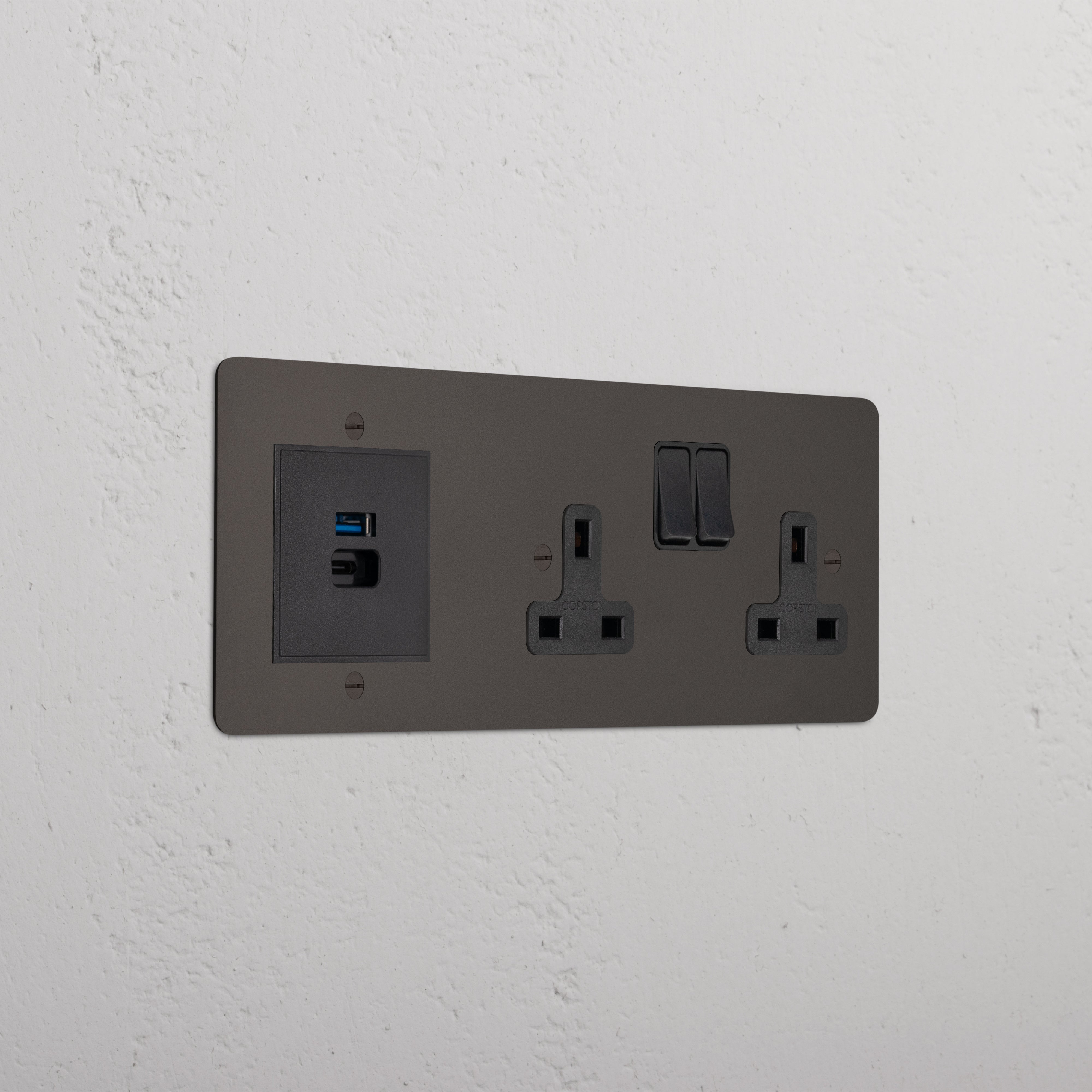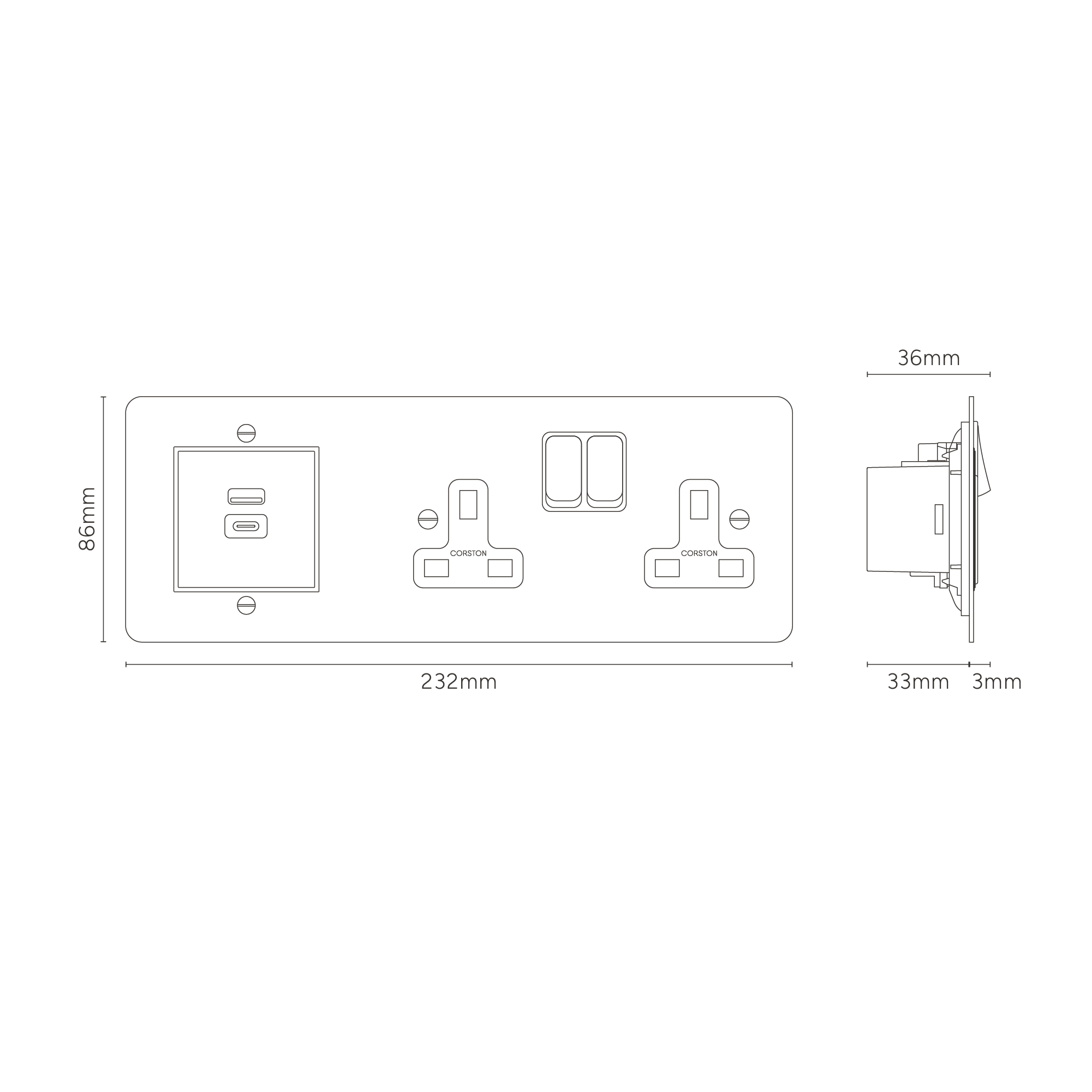 This triple mixed socket combines a two standard UK sockets and a dual USB-A+C socket on one plate.