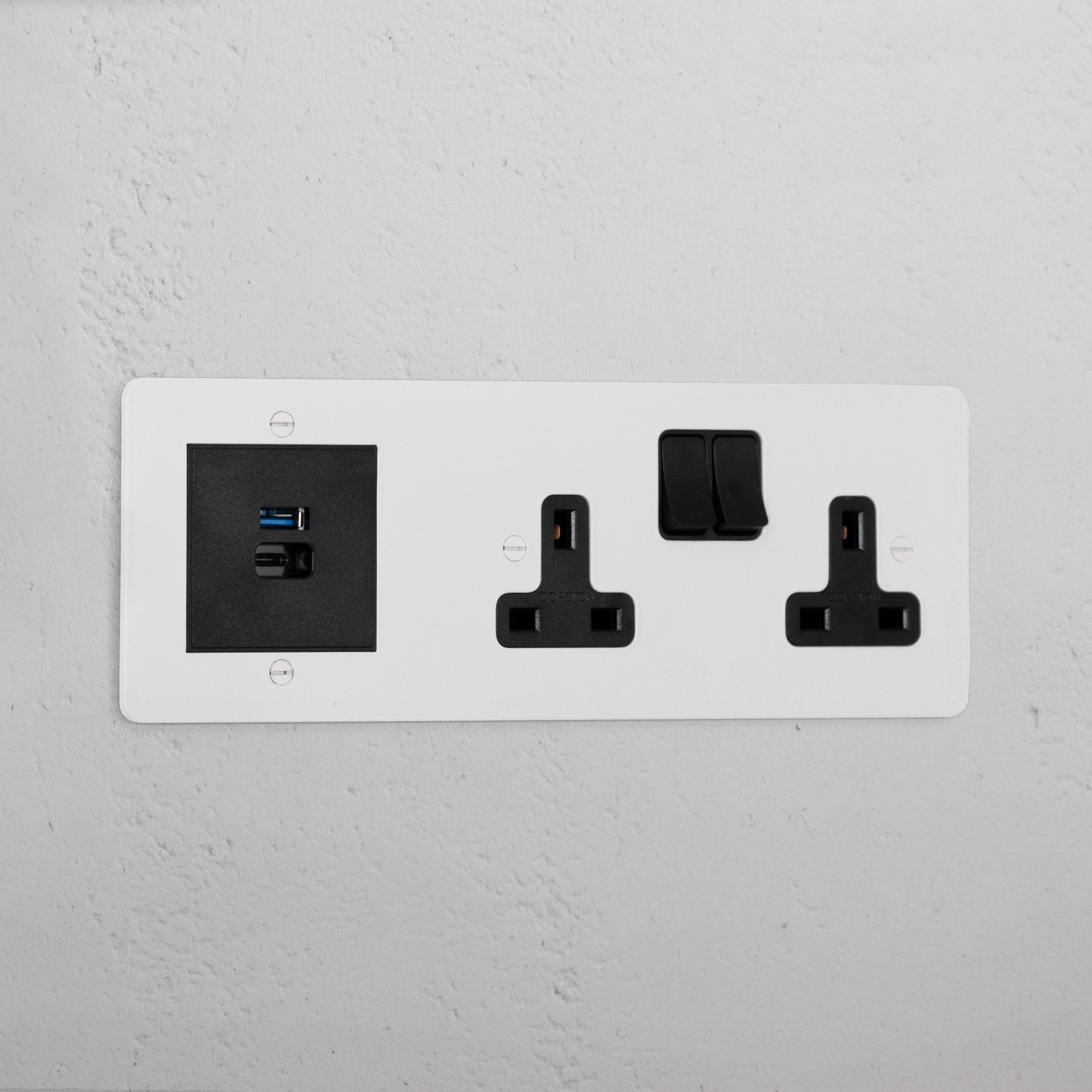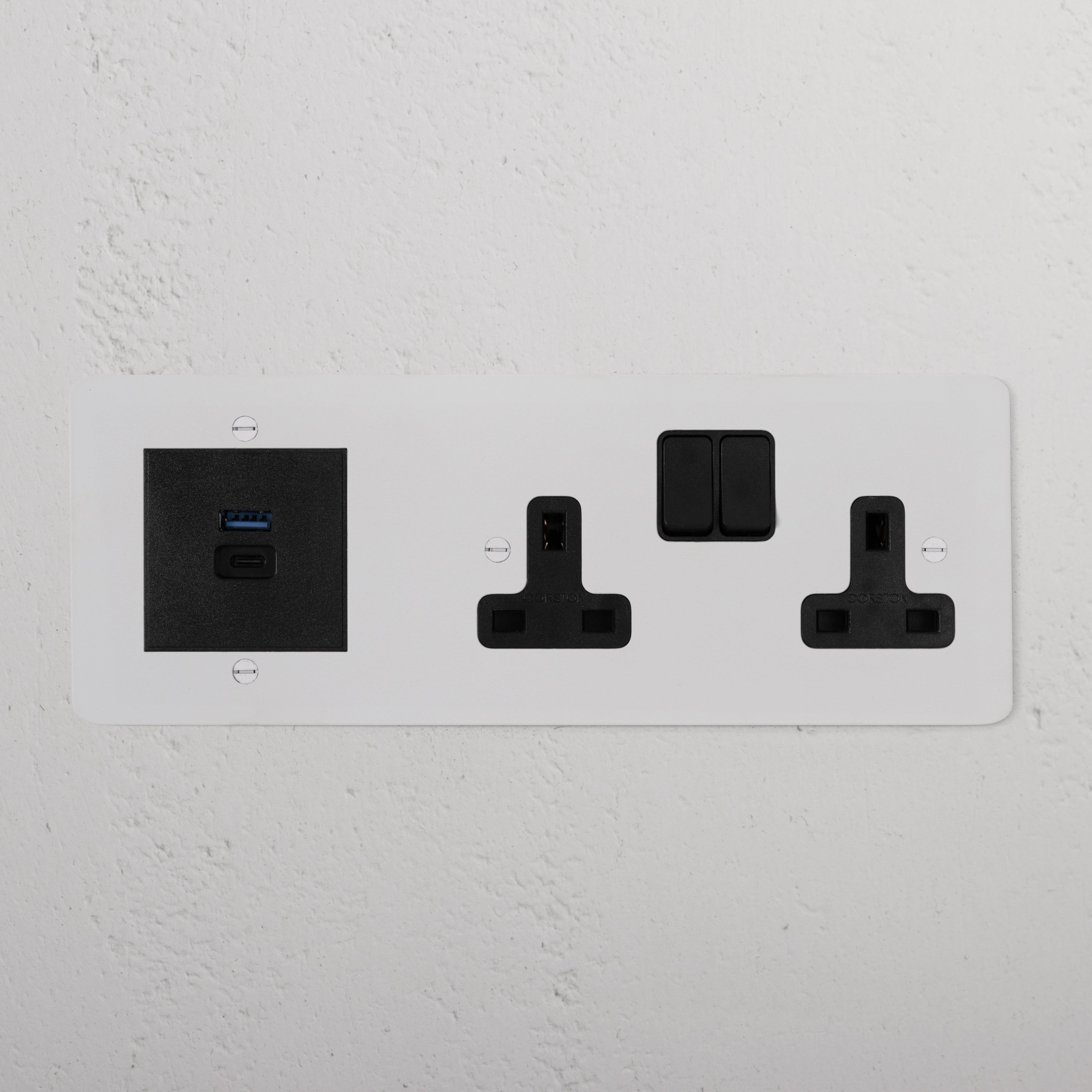 This triple mixed socket combines a two standard UK sockets and a dual USB-A+C socket on one plate.