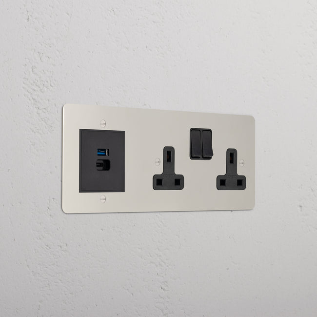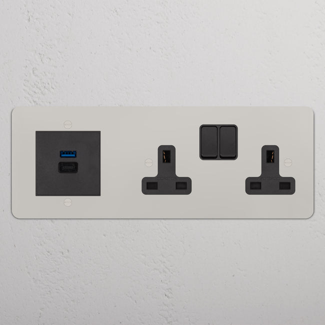 This triple mixed socket combines a two standard UK sockets and a dual USB-A+C socket on one plate.