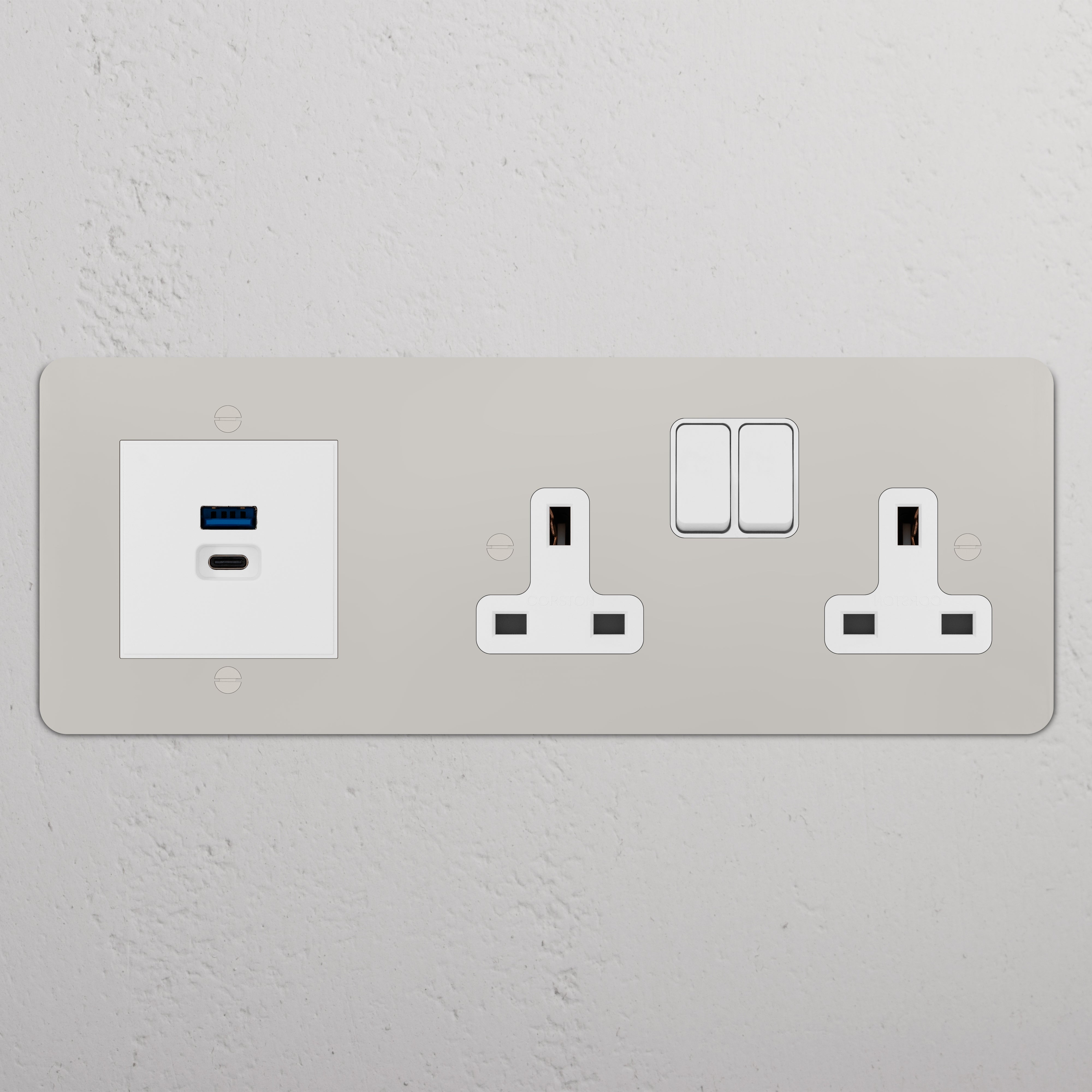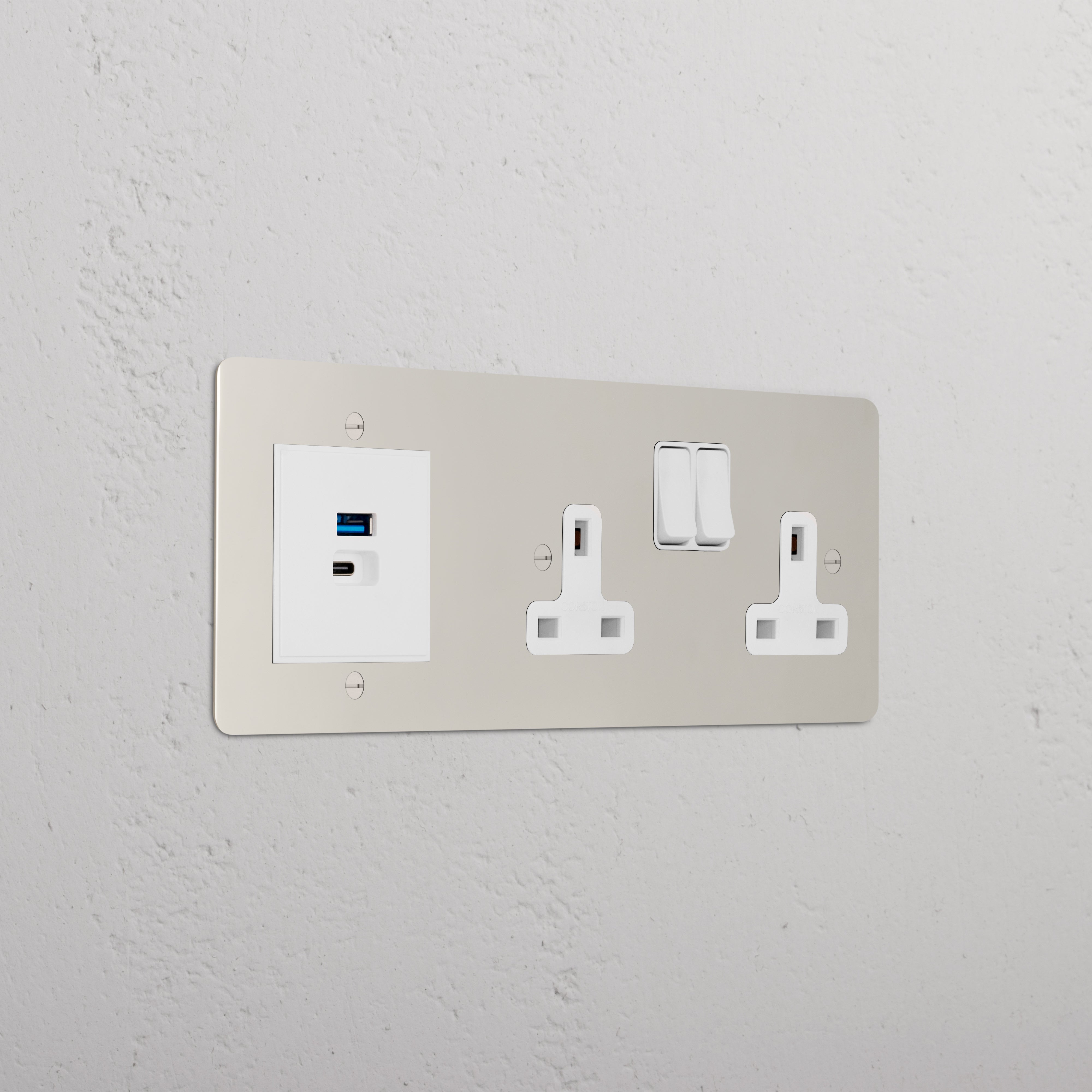 This triple mixed socket combines a two standard UK sockets and a dual USB-A+C socket on one plate.