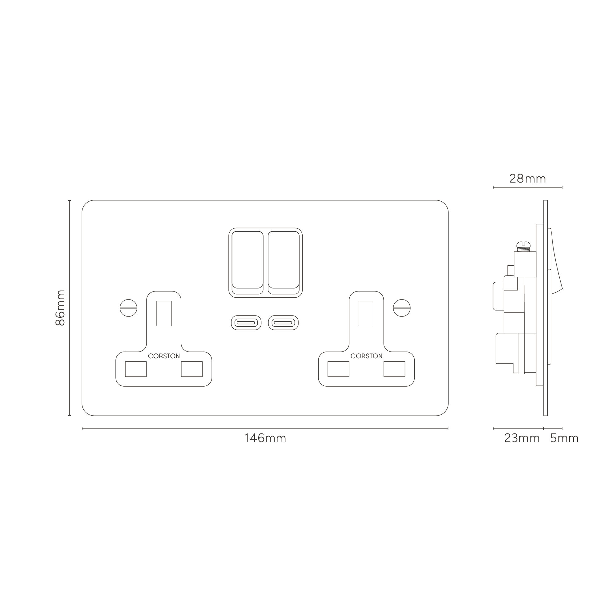 This double mixed socket combines a standard UK socket and two USB-C ports on one plate.