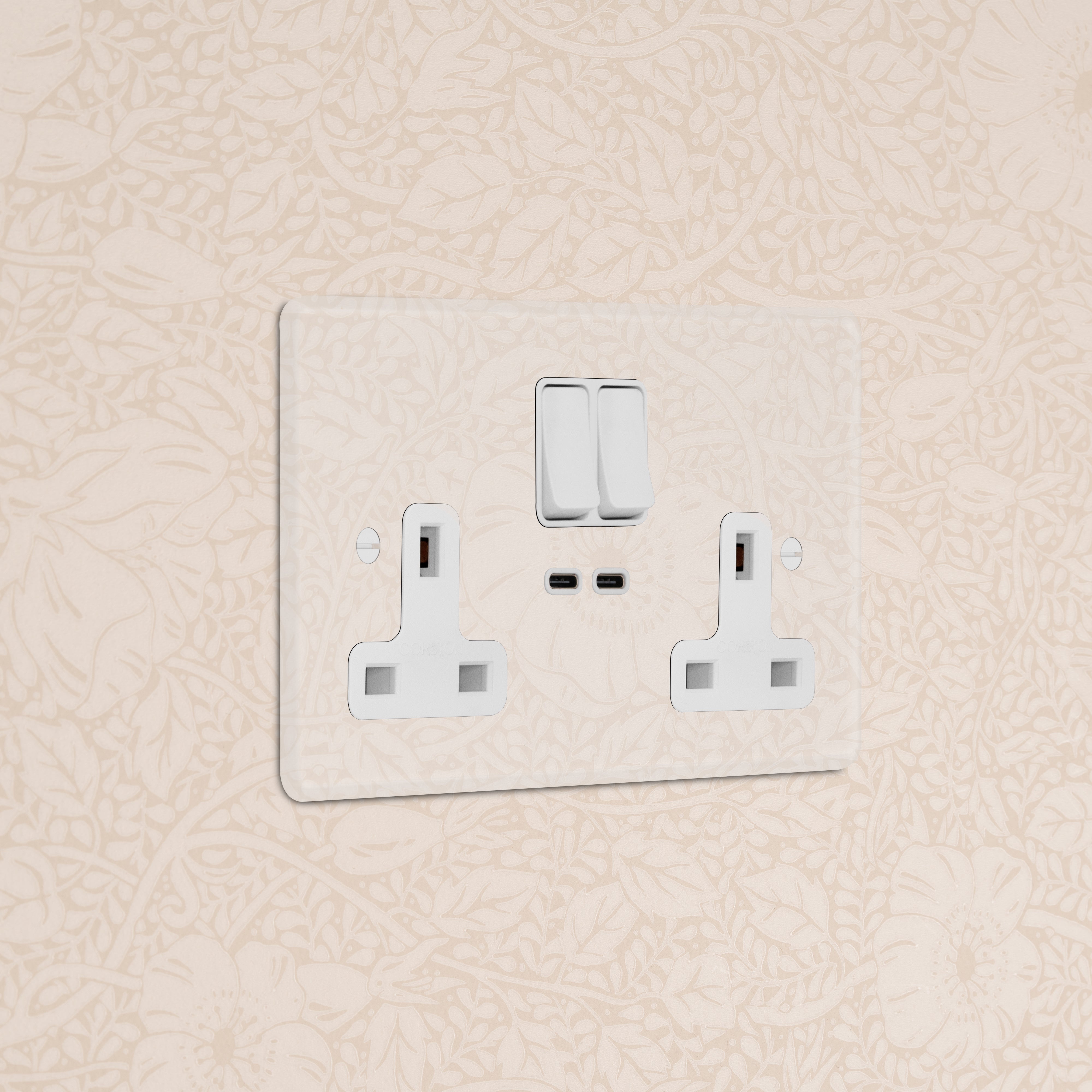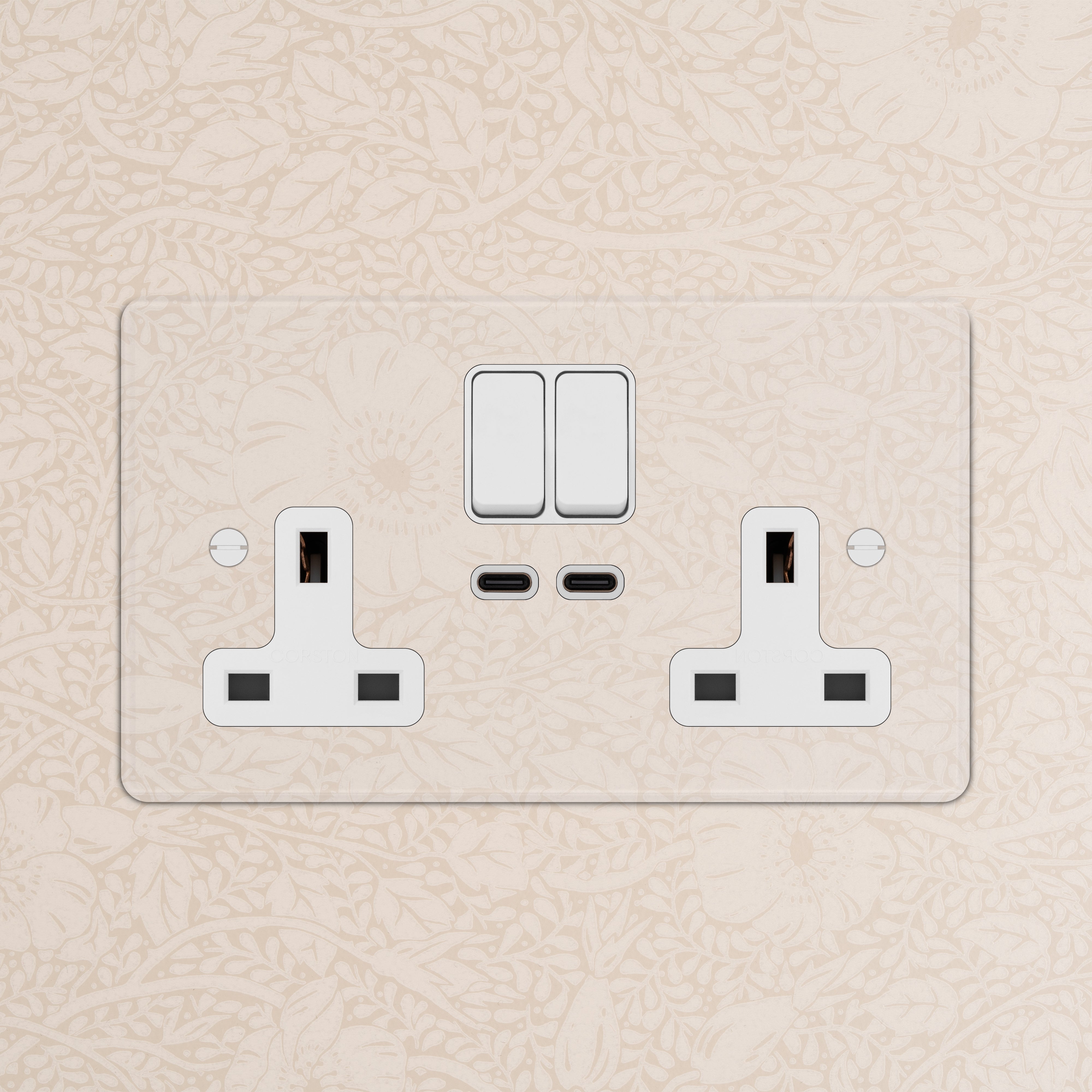This double mixed socket combines a standard UK socket and two USB-C ports on one plate.