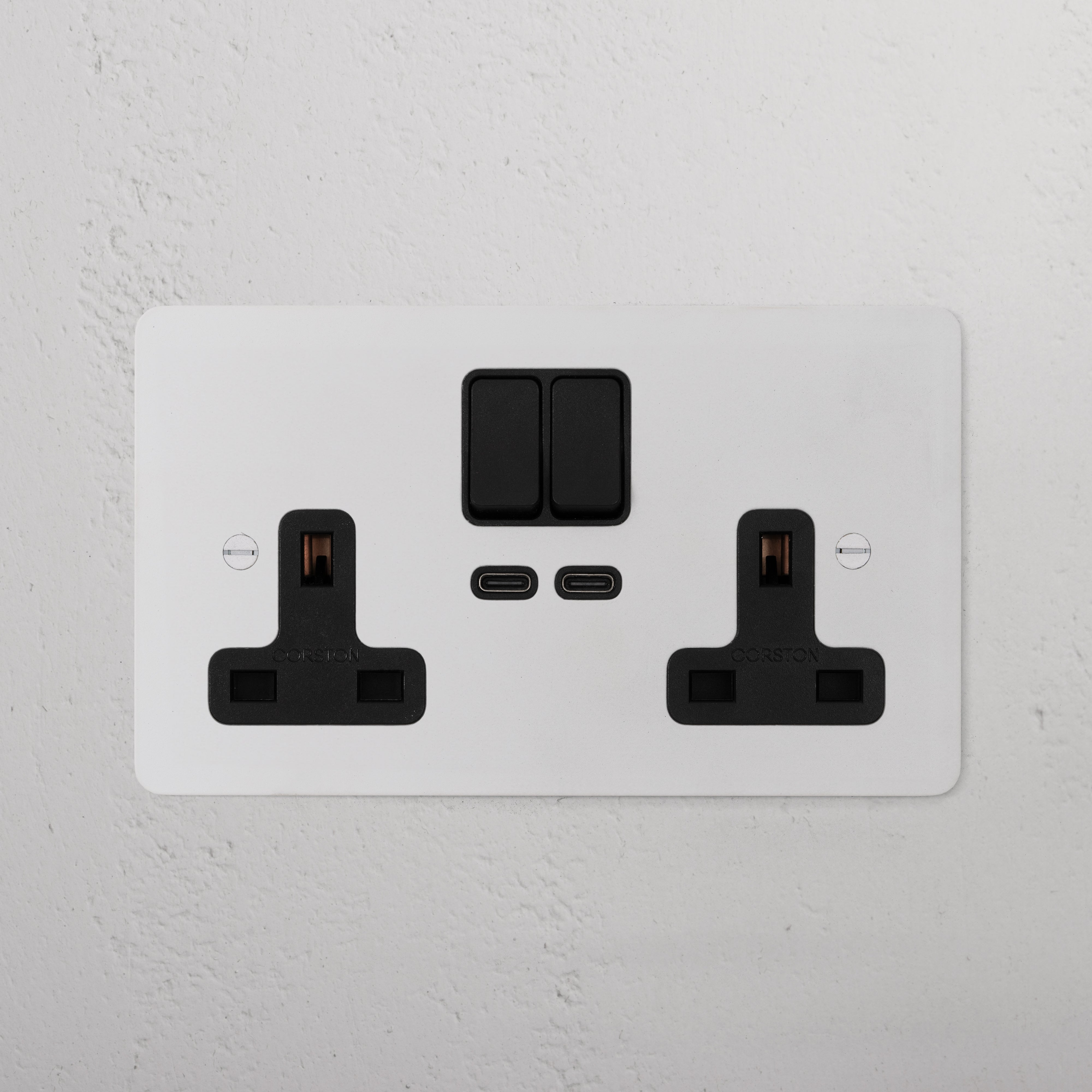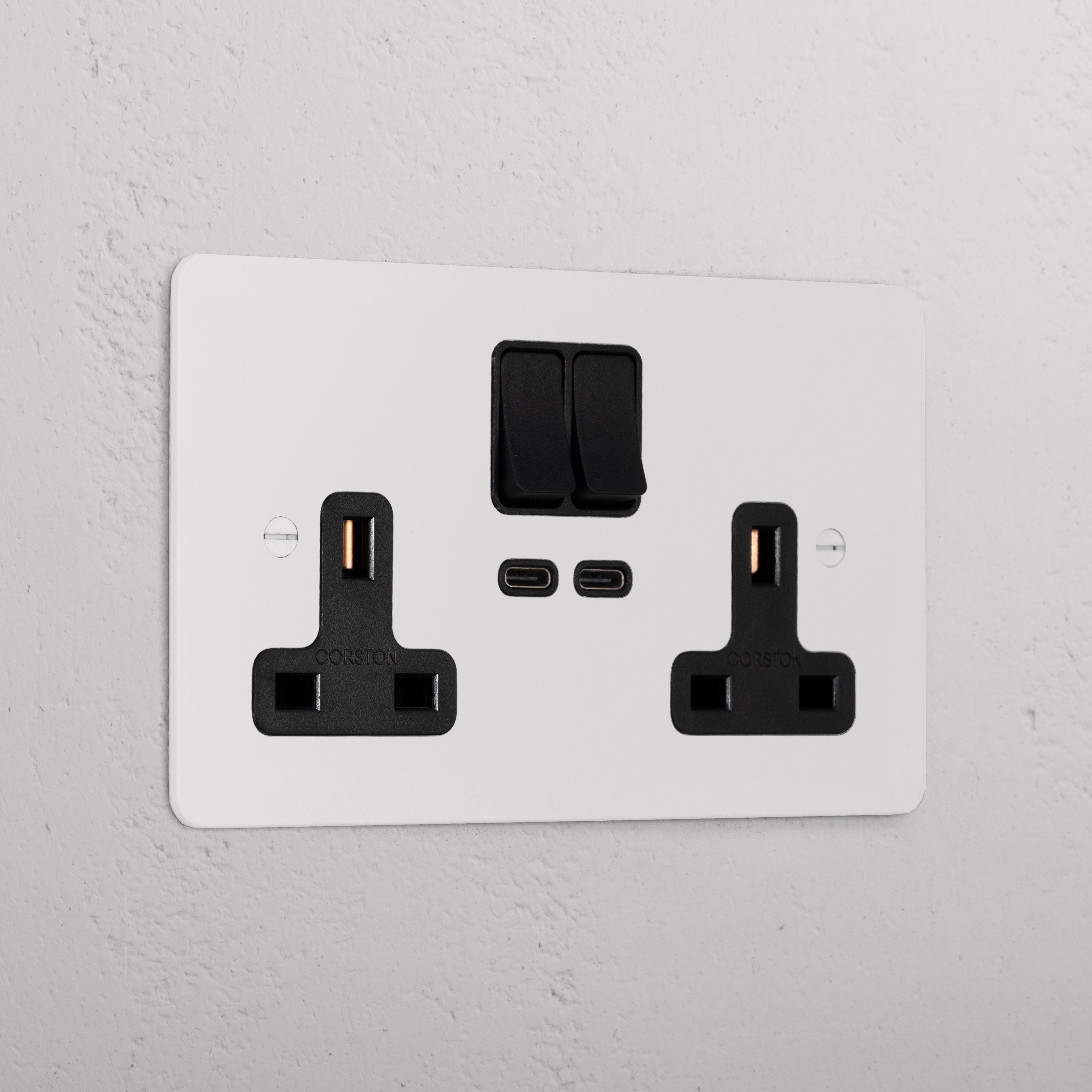 This double mixed socket combines a standard UK socket and two USB-C ports on one plate.