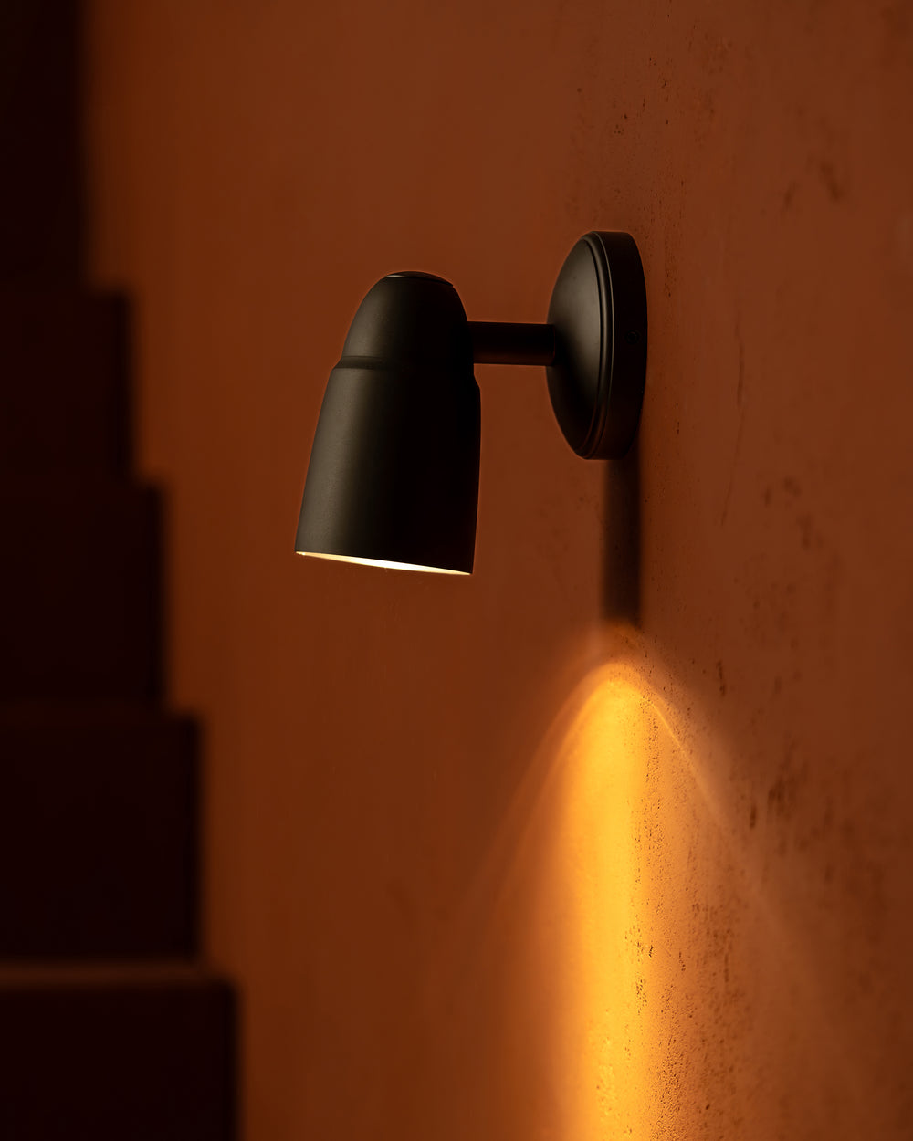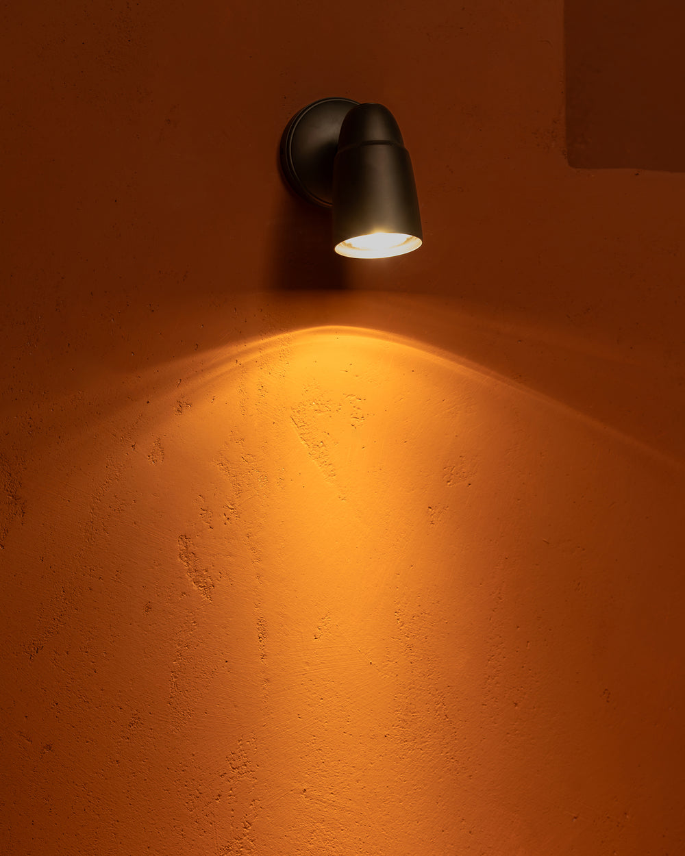 Our wall-mounted Ealing flush spotlight is designed to be directed downwards to illuminate garden paths, flowerbeds and the like.