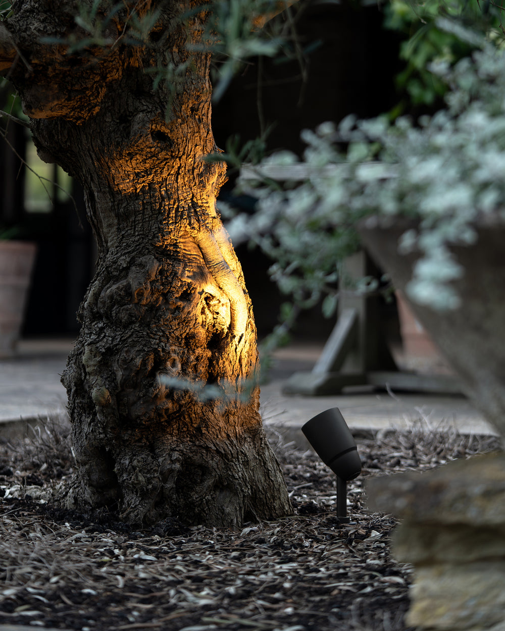 Our Ealing ground spotlight is designed to be directed upwards to illuminate trees, garden features or external walls from below.