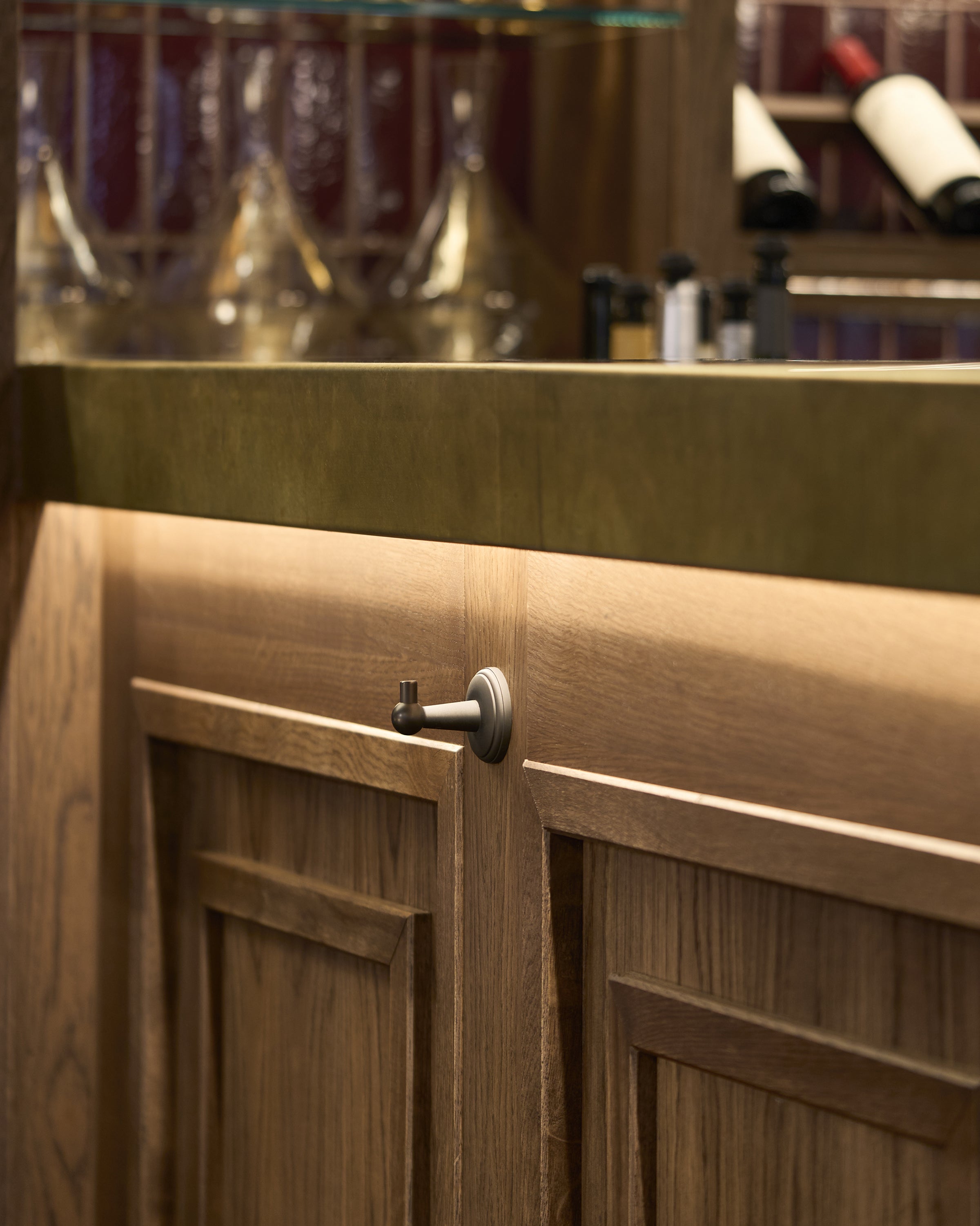 This simple hook design is small enough to be used inside of cupboards, and looks great when used in groups.