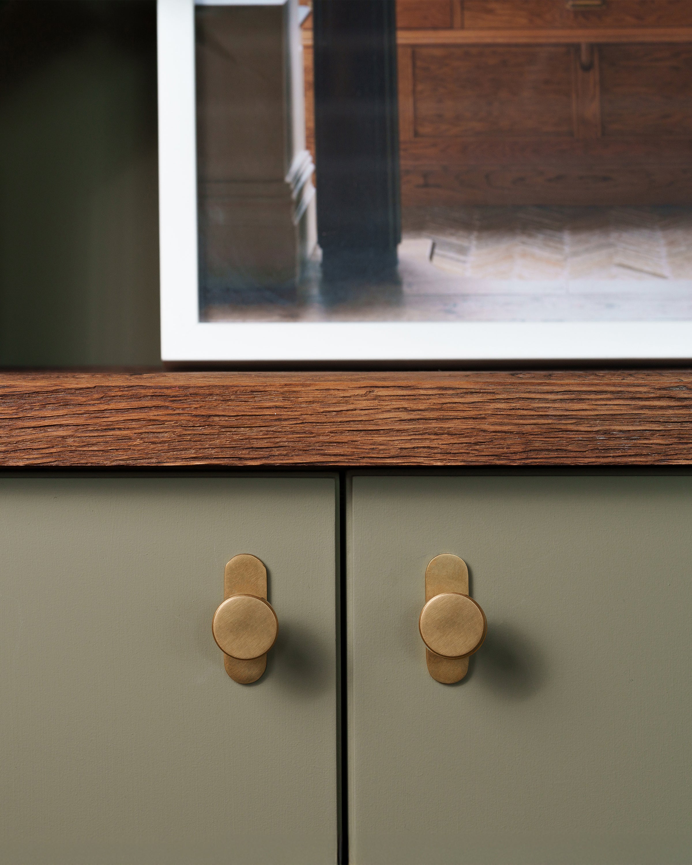 We’ve designed our distinctly modern Kilburn cabinet knob with a backplate for a bolder look (and to protect drawers and doors from marks and scratches).