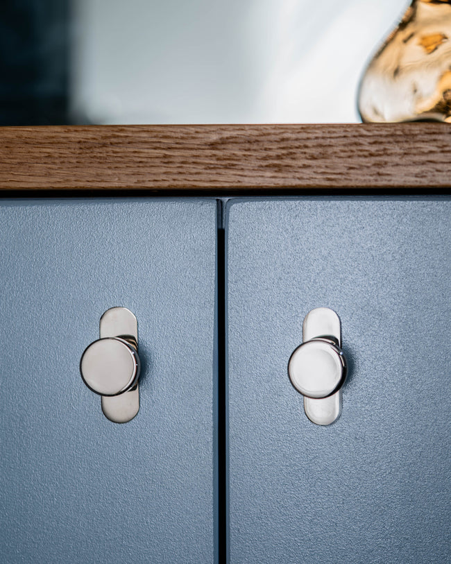We’ve designed our distinctly modern Kilburn cabinet knob with a backplate for a bolder look (and to protect drawers and doors from marks and scratches).
