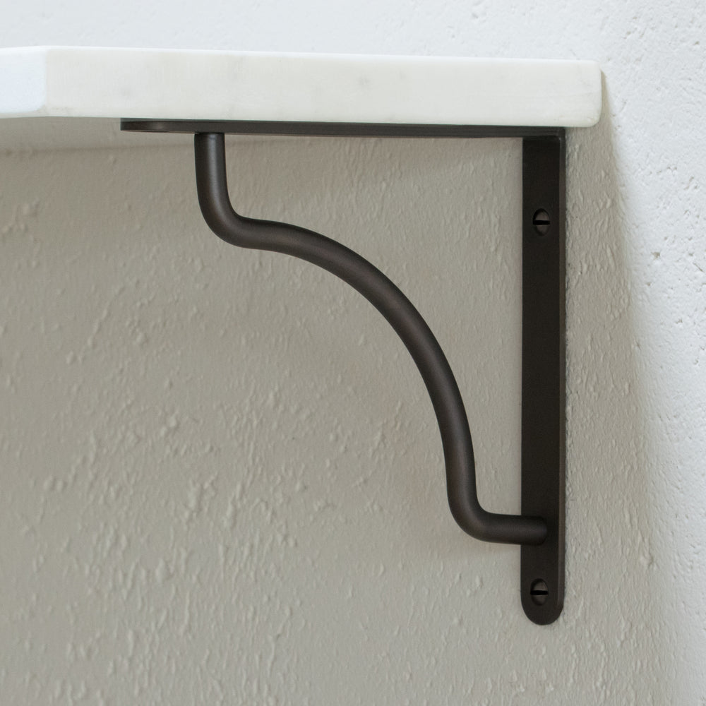Our gently curved Kilburn shelf bracket is made from sturdy solid brass and will comfortably hold 40kg.