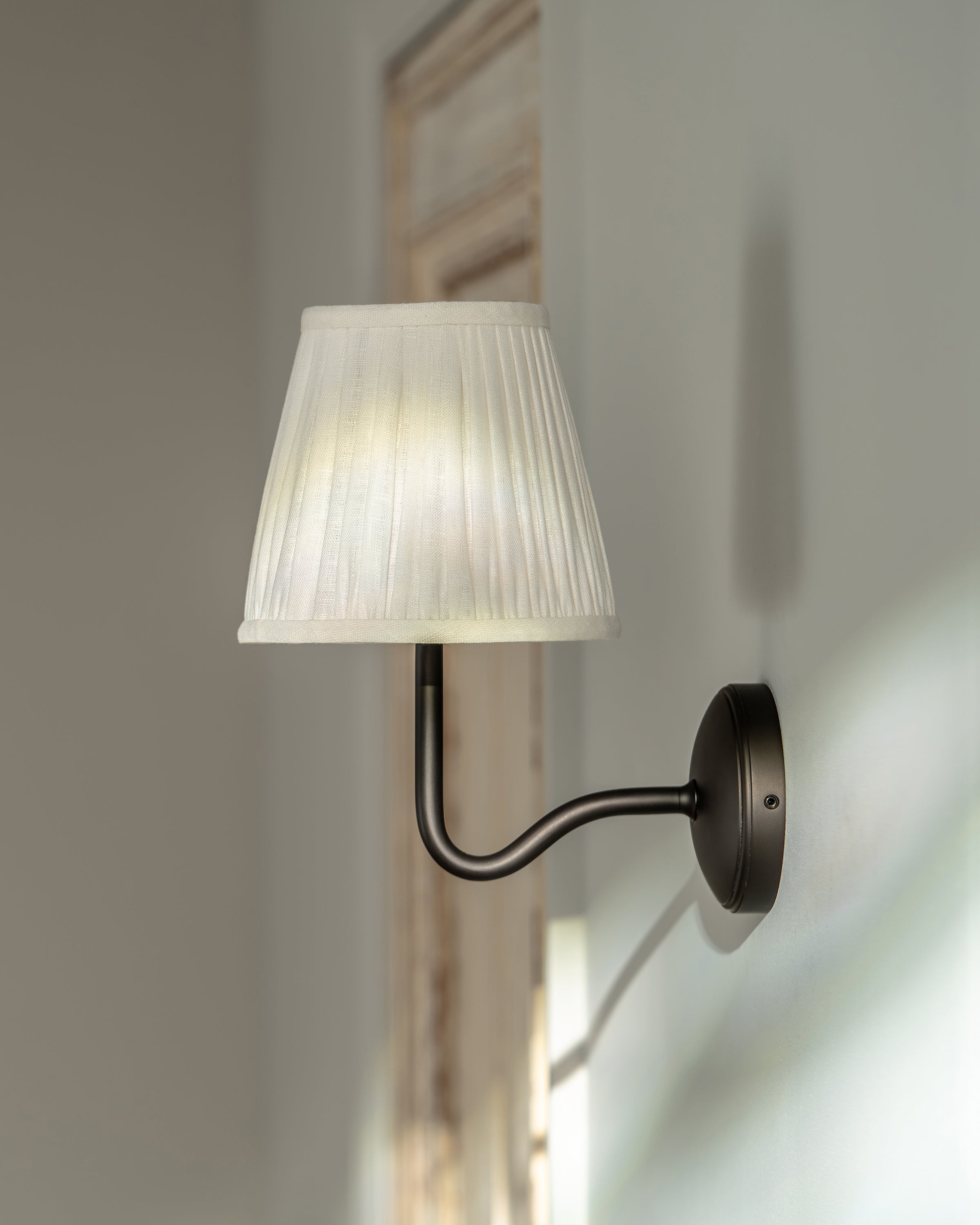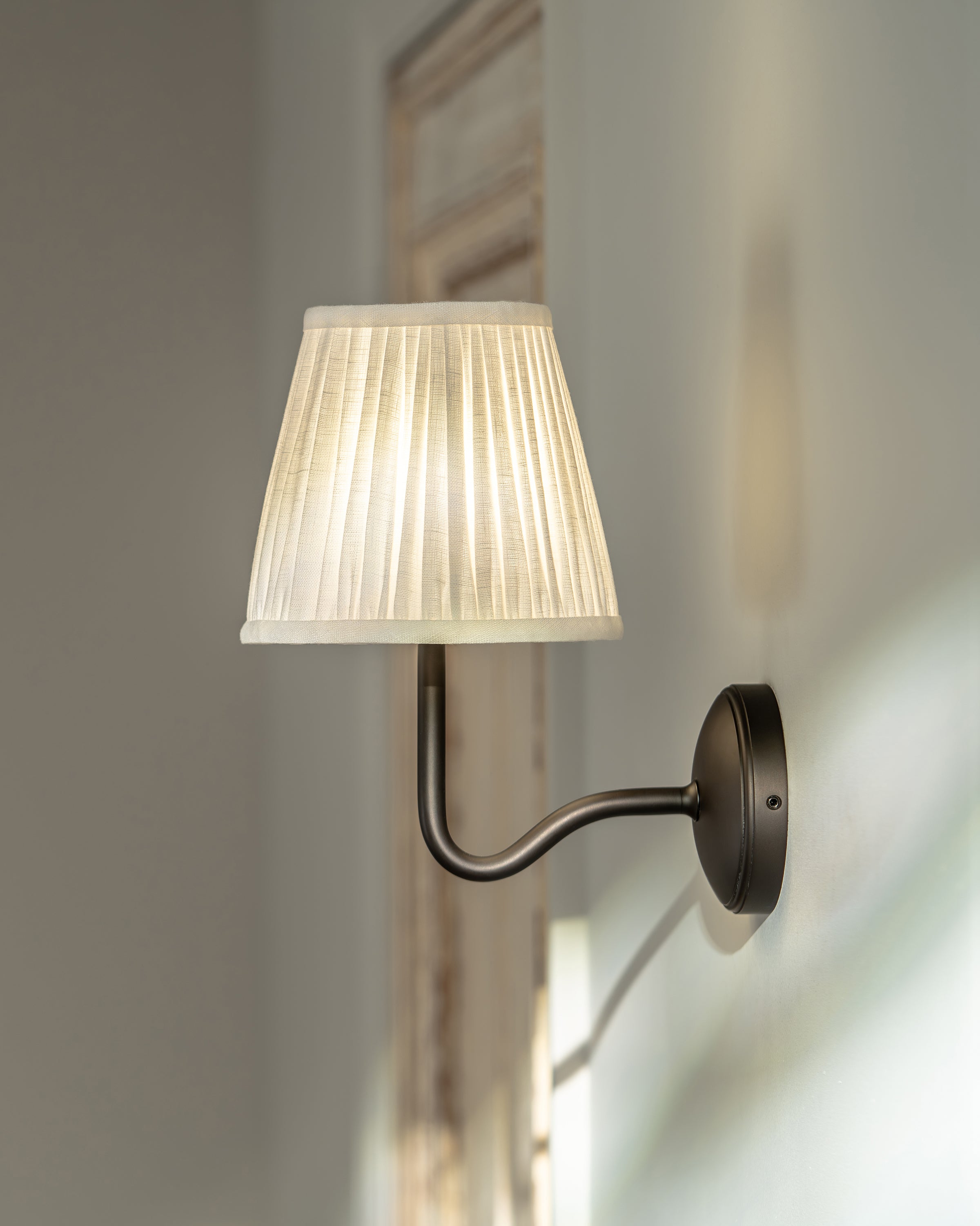 Our medium-sized take on the traditional swan neck wall light is scaled up, but still perfectly proportioned. It’ll have a greater presence in bigger or high-ceilinged rooms.