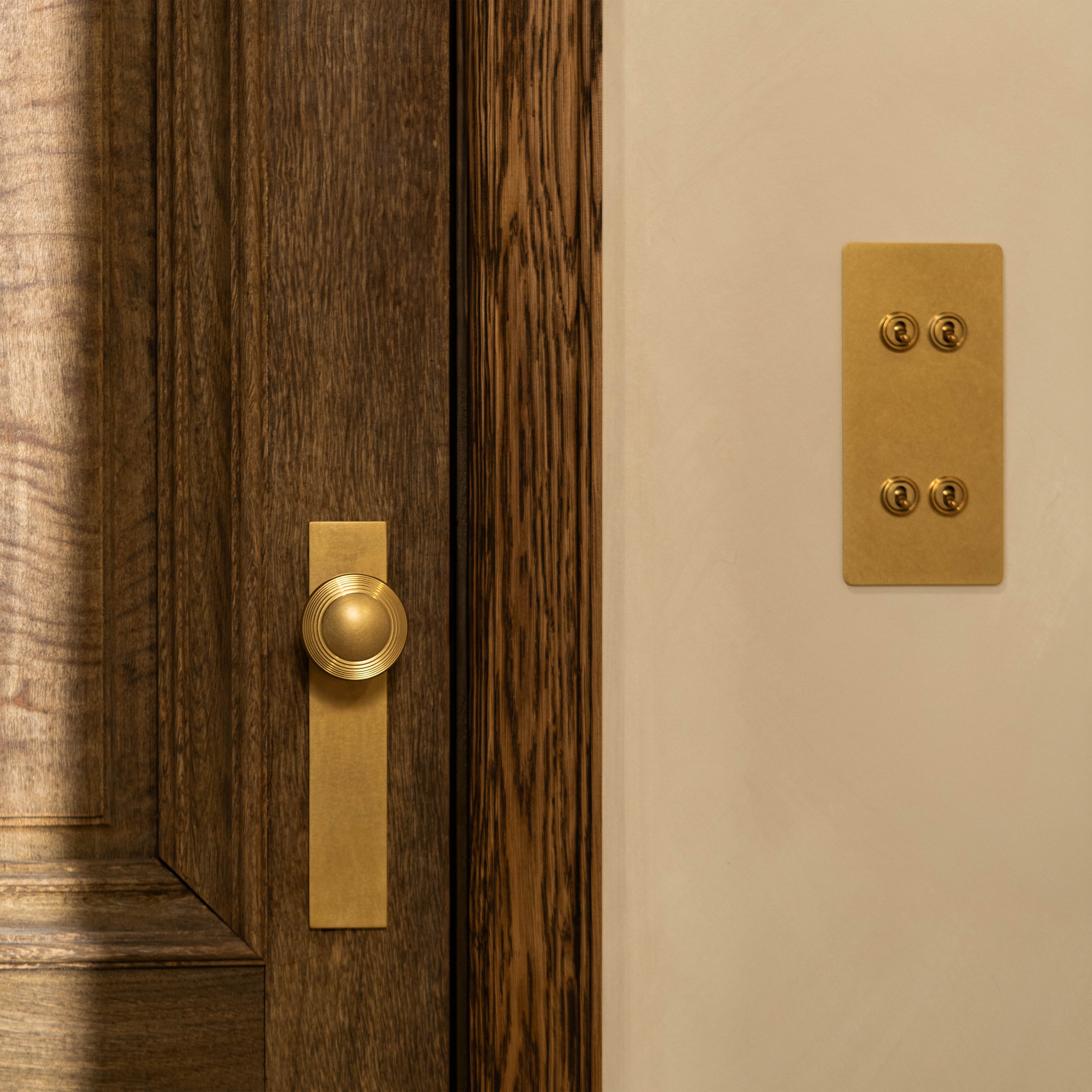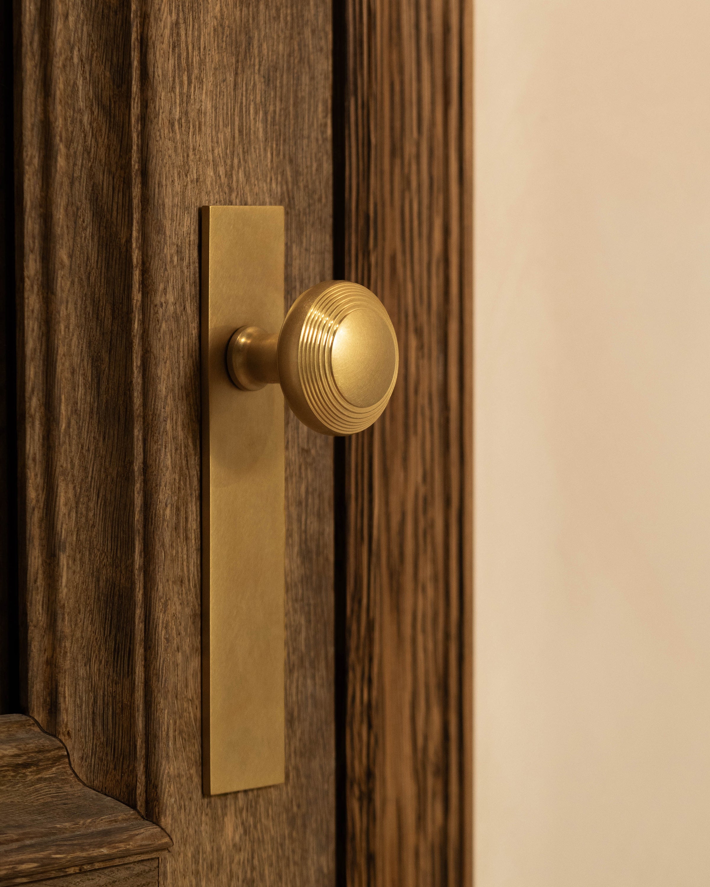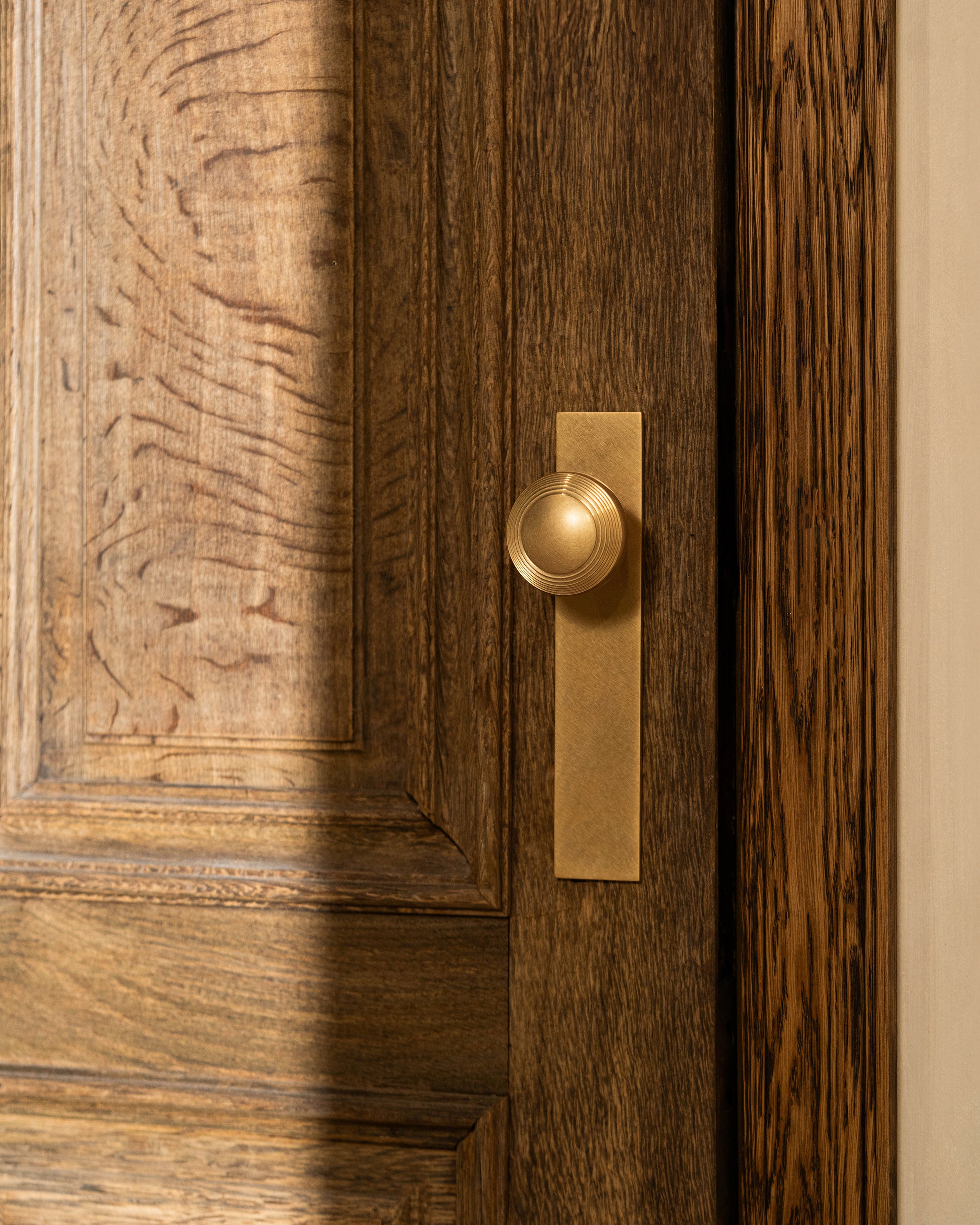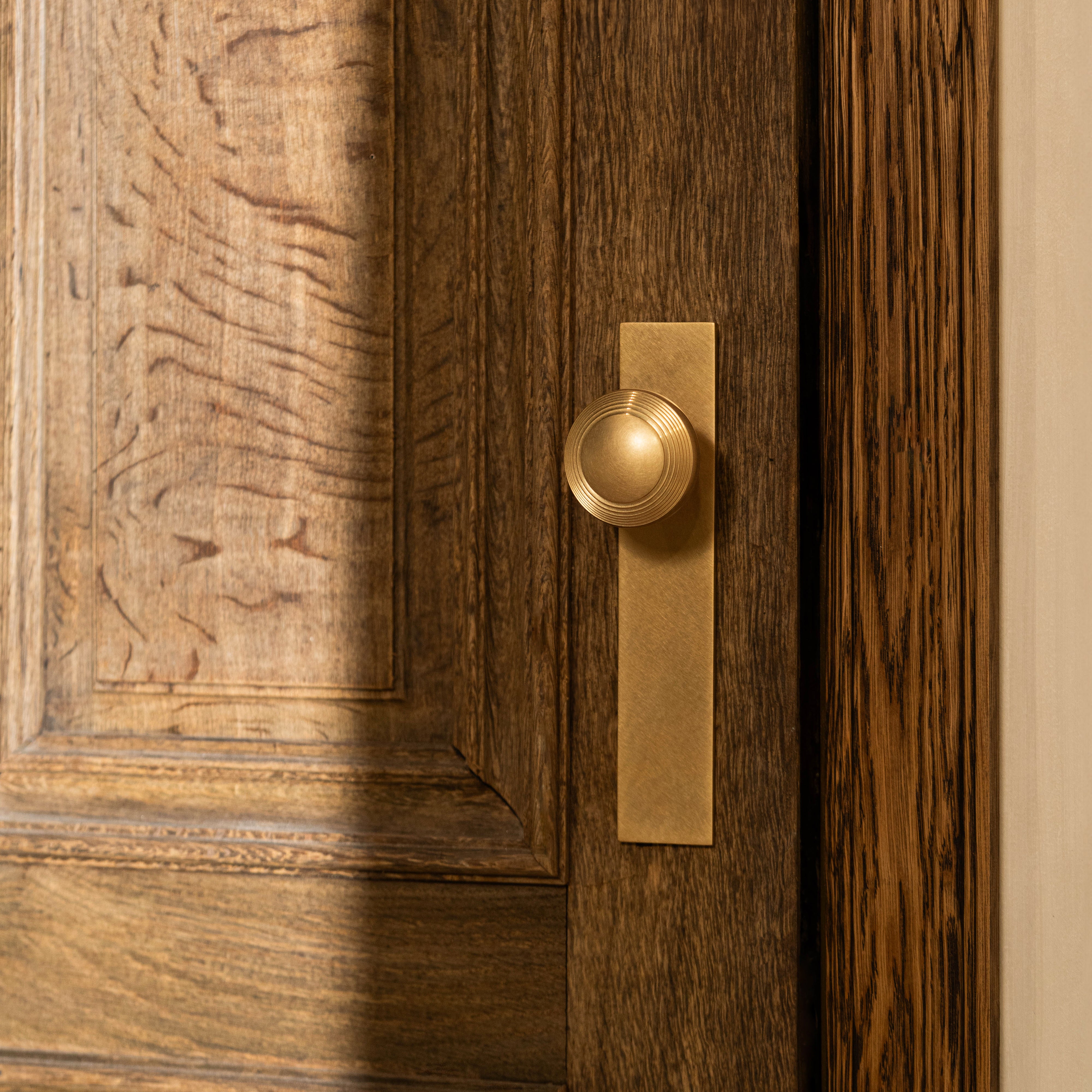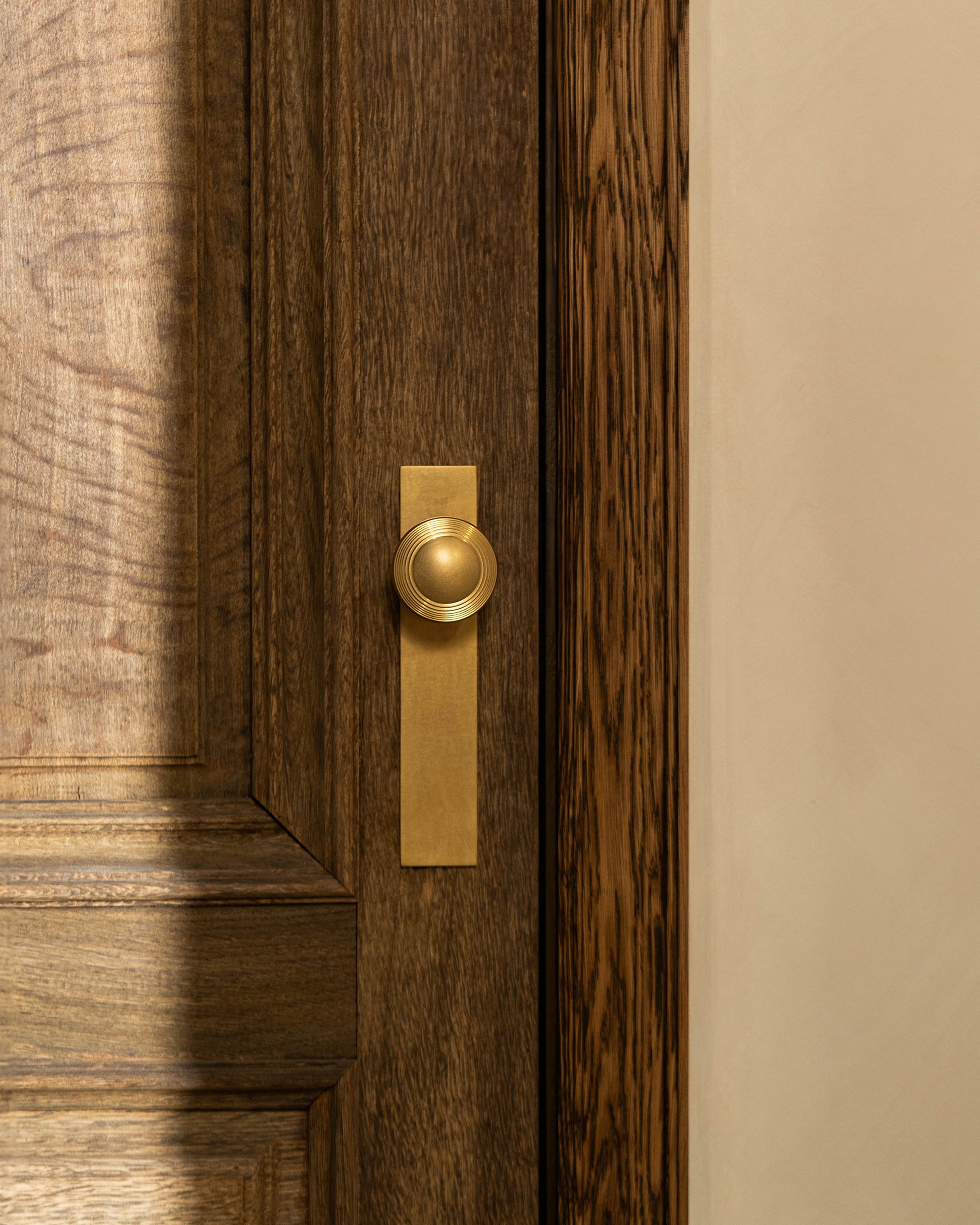 We’ve streamlined things, giving it a flatter knob and, in this case, a low-profile, long backplate. It’ll work great in period homes with a contemporary edge, or new homes that want to bring in a traditional touch.