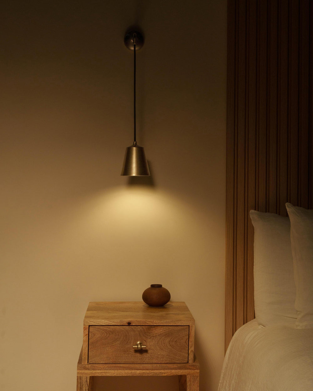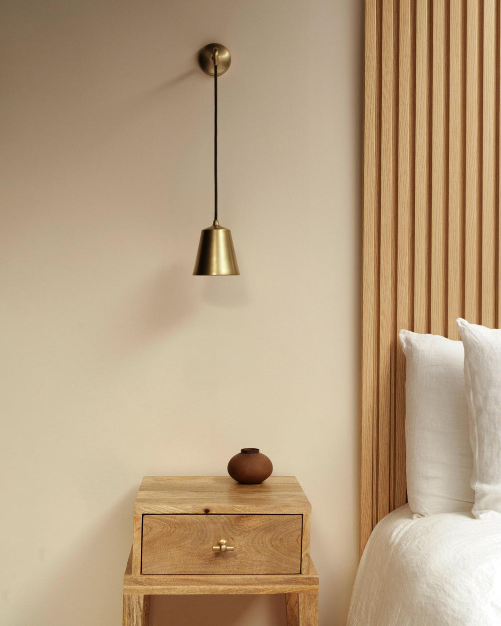 The minimalistic Richmond hanging light is ideal for modern and traditional interiors. It’ll look great on its own, or have one either side of your bed, dresser or bathroom mirror. Antique brass is what’s called a ‘living’ finish because it reacts to the air and moisture around it, causing it to darken (especially in the areas you touch most). We’ve given it a head start by ageing it by hand, so it has that antique look right out the box.