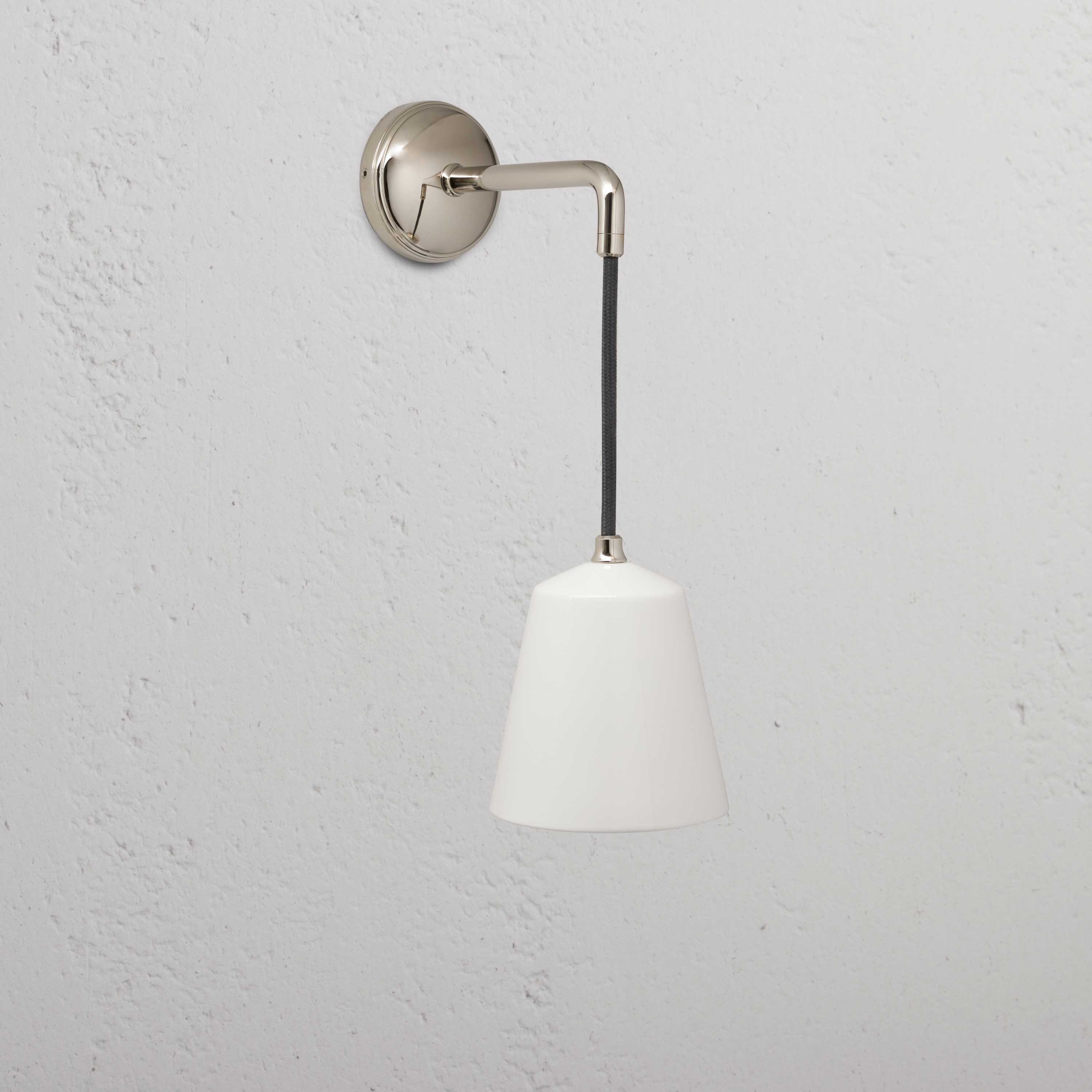 Polished nickel is our answer to chrome. It’s a bit warmer, which we think is more versatile, so you can use it with warm or cool colour palettes. Pair it with the fine porcelain shade for a classic look.