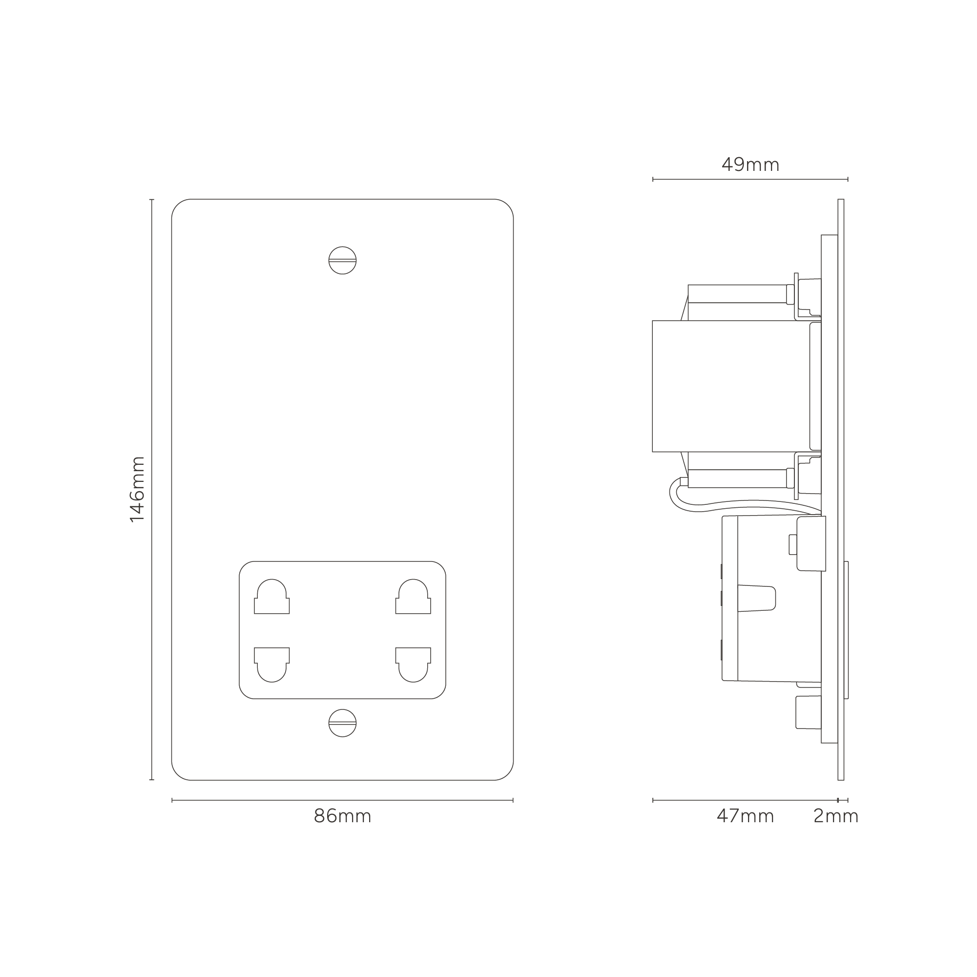 All Corston switches and sockets require a back box with a minimum depth of 35-47mm. It's the only way you'll achieve a flush finish. Our 6G and 8G switches must be used with a Corston double metal back box. because of the bespoke size.