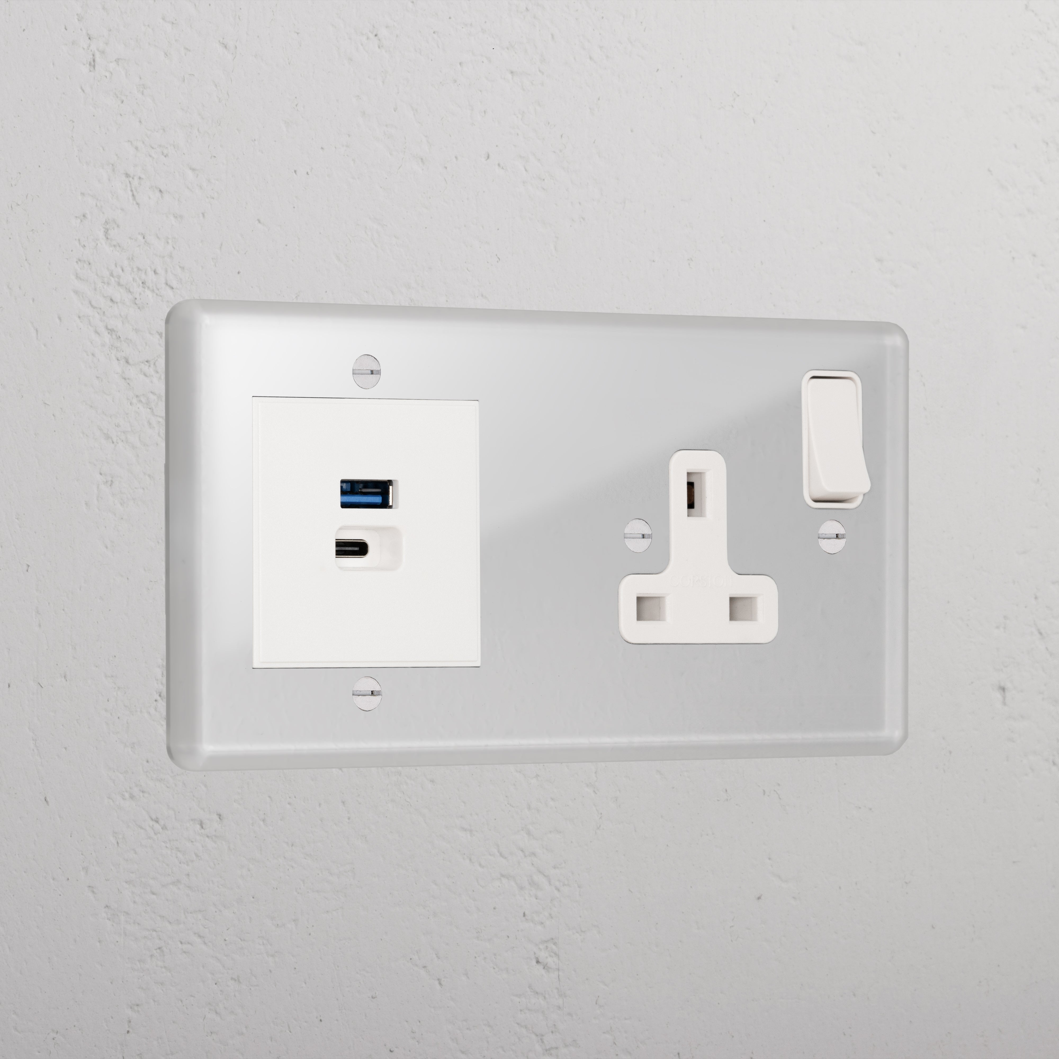This double mixed socket combines a single standard UK socket and a dual USB-A+C socket on one plate.