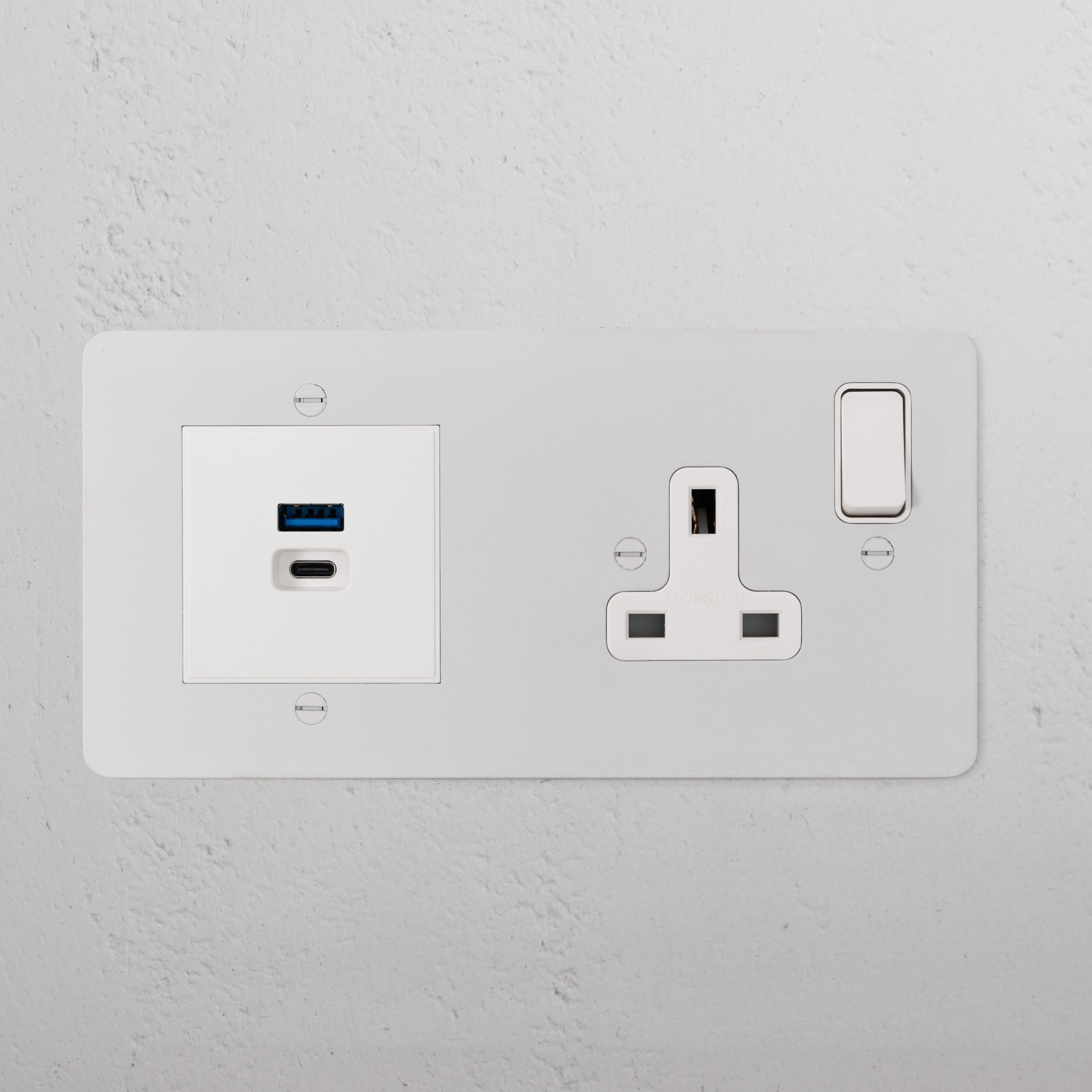 This double mixed socket combines a single standard UK socket and a dual USB-A+C socket on one plate.