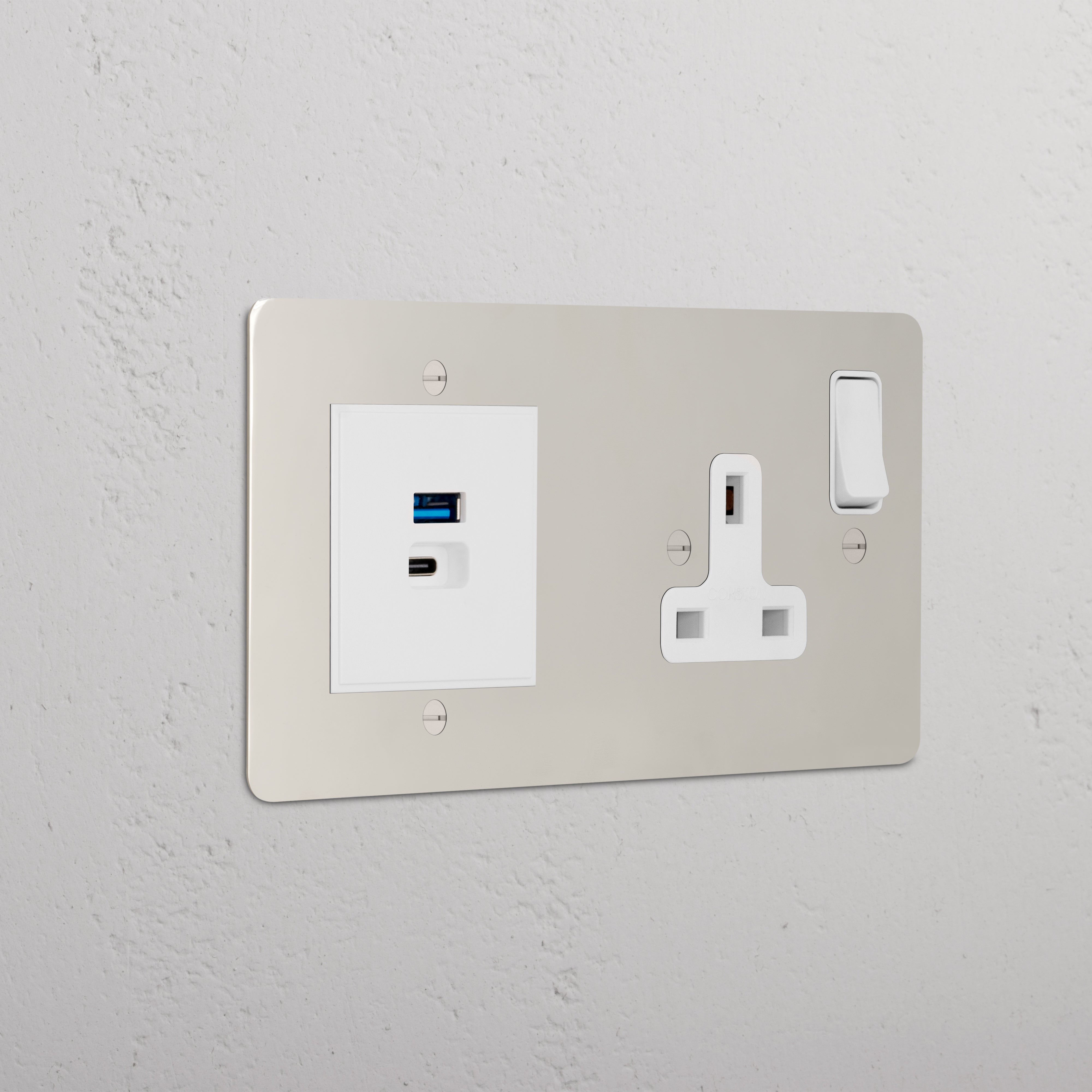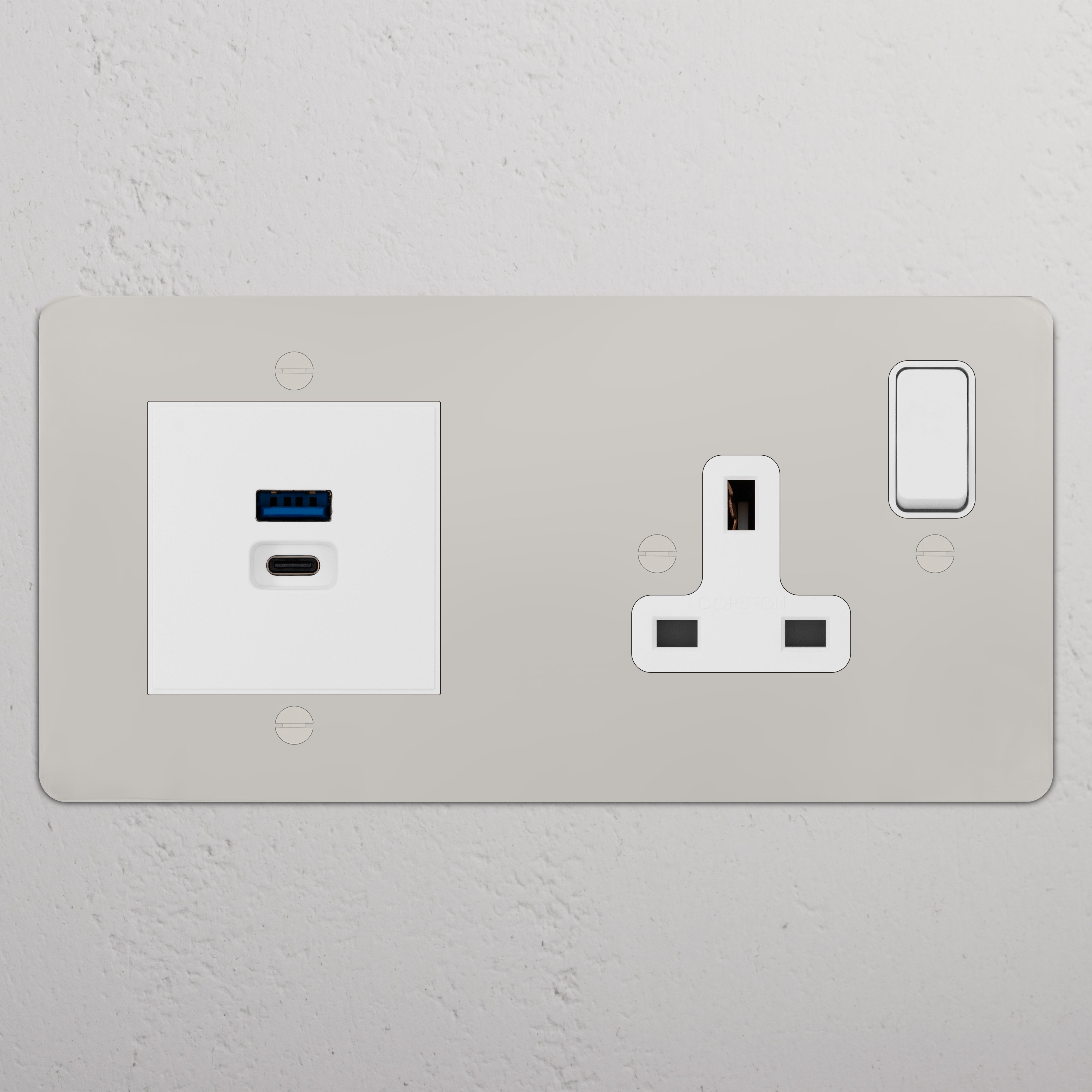 This double mixed socket combines a single standard UK socket and a dual USB-A+C socket on one plate.