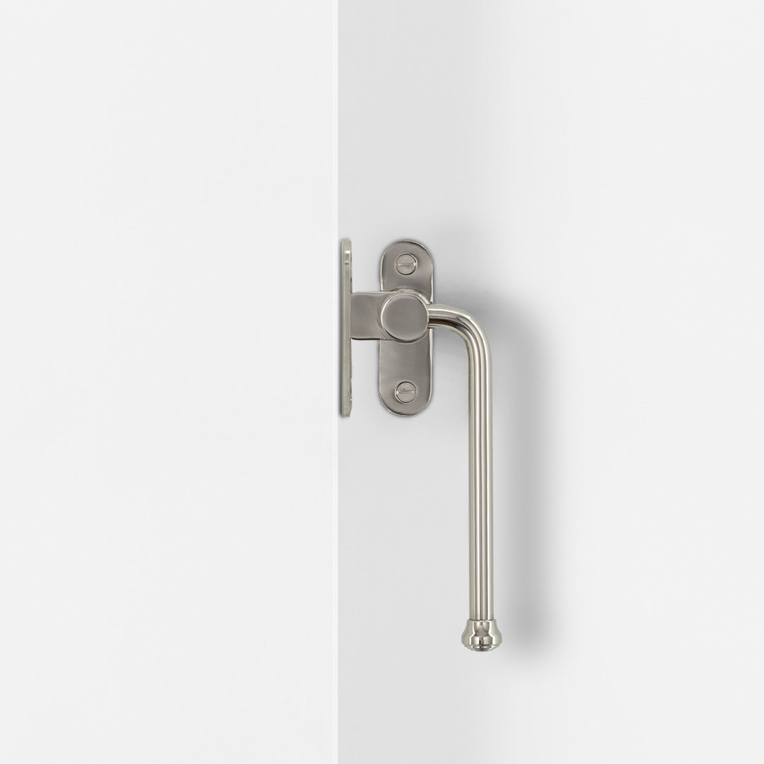 This version has a two-part handle mechanism with a catch that’s designed to be recessed into the side of the window frame.