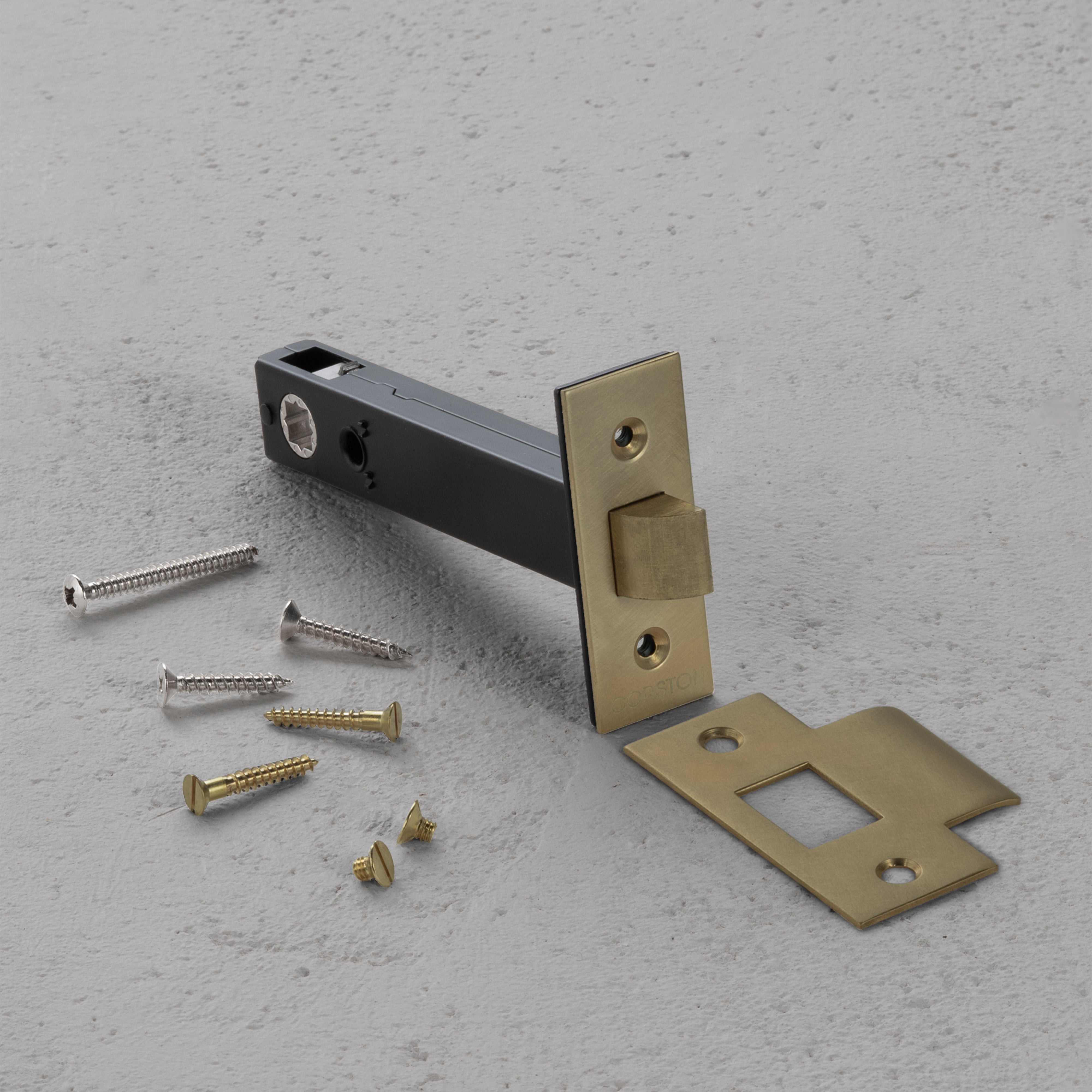 It comes with a solid brass face plate and strike plate, along with refined mounting screws, for a look that’s clean and considered.