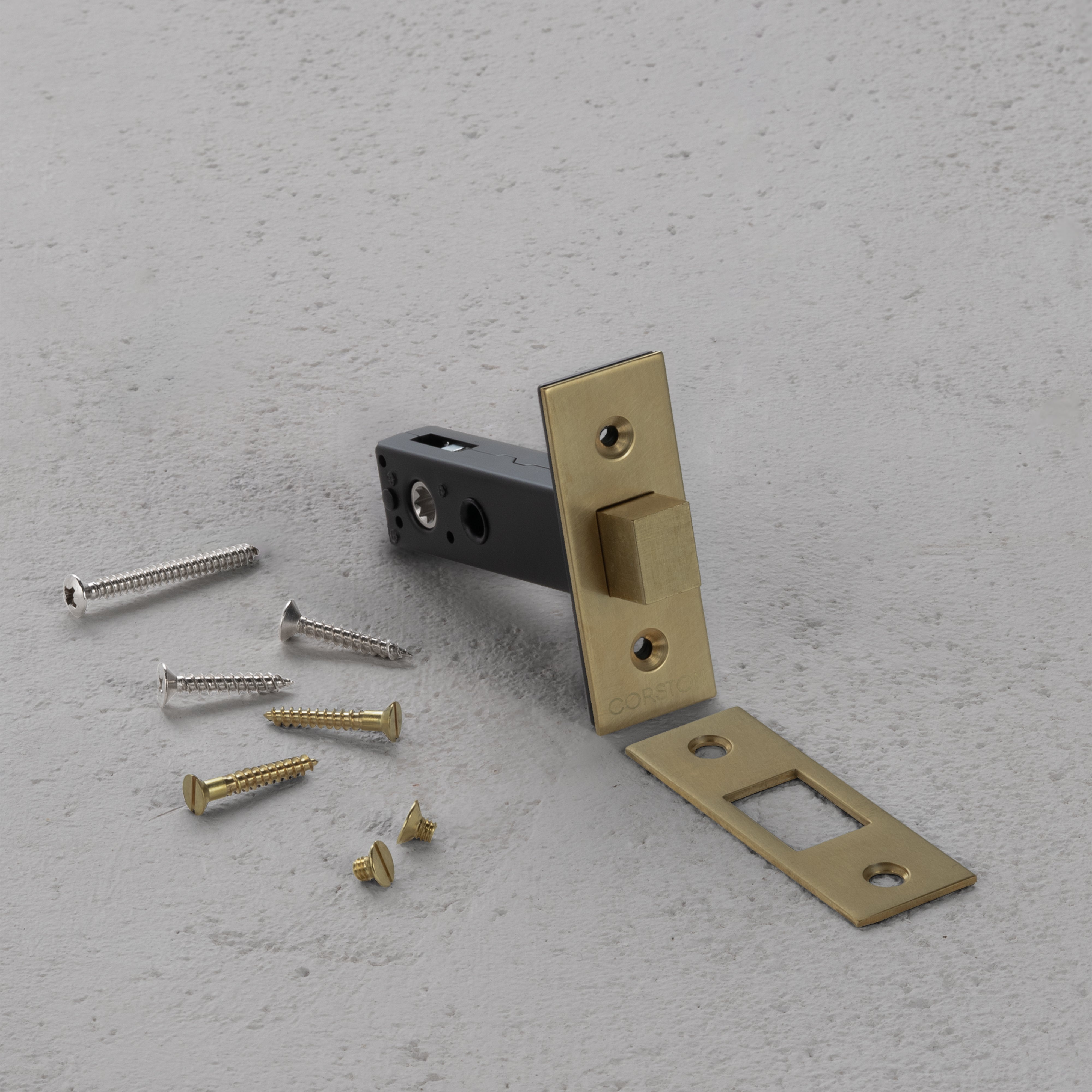 It comes with a solid brass face plate and strike plate, along with refined mounting screws, for a look that’s clean and considered.