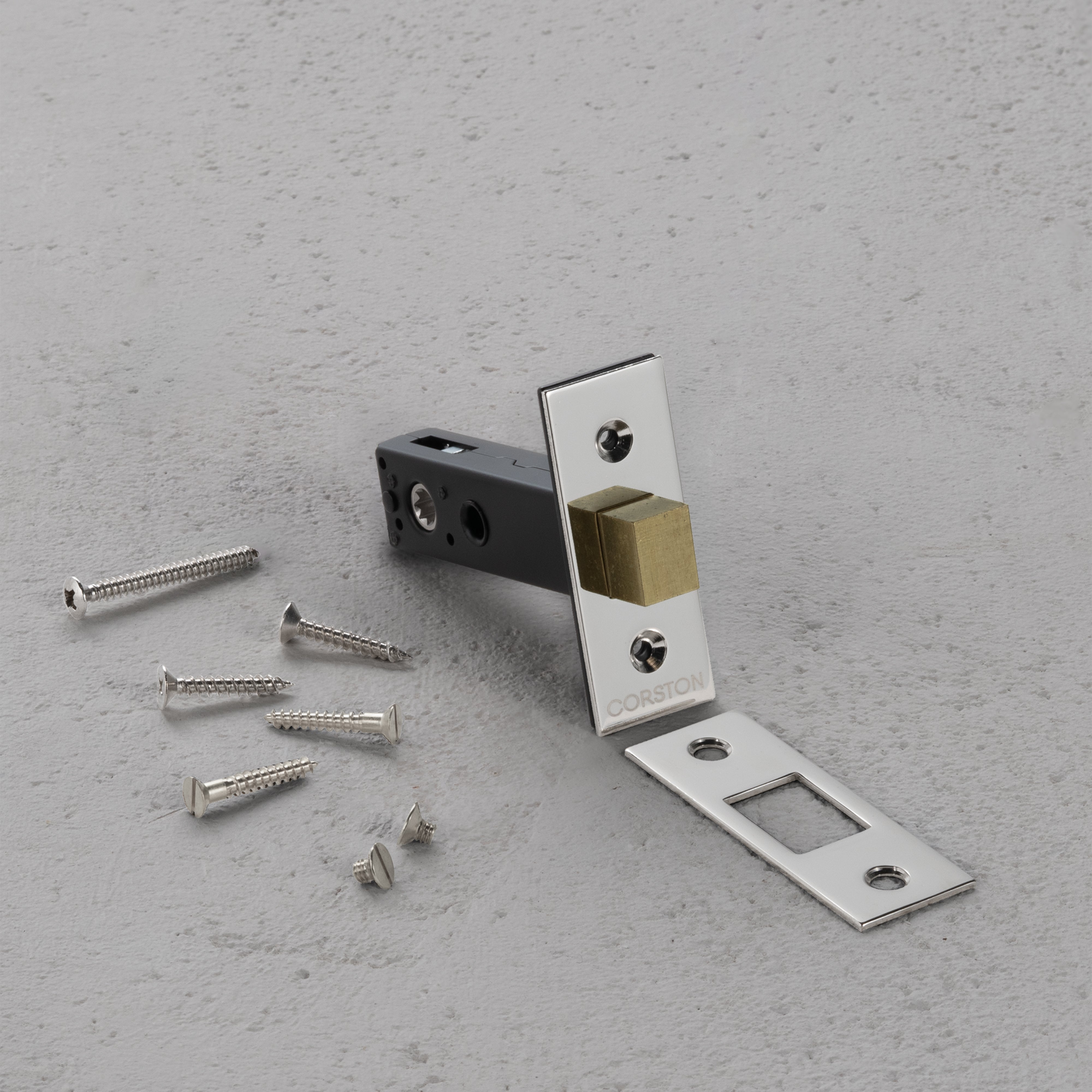 It comes with a solid brass face plate and strike plate, along with refined mounting screws, for a look that’s clean and considered.