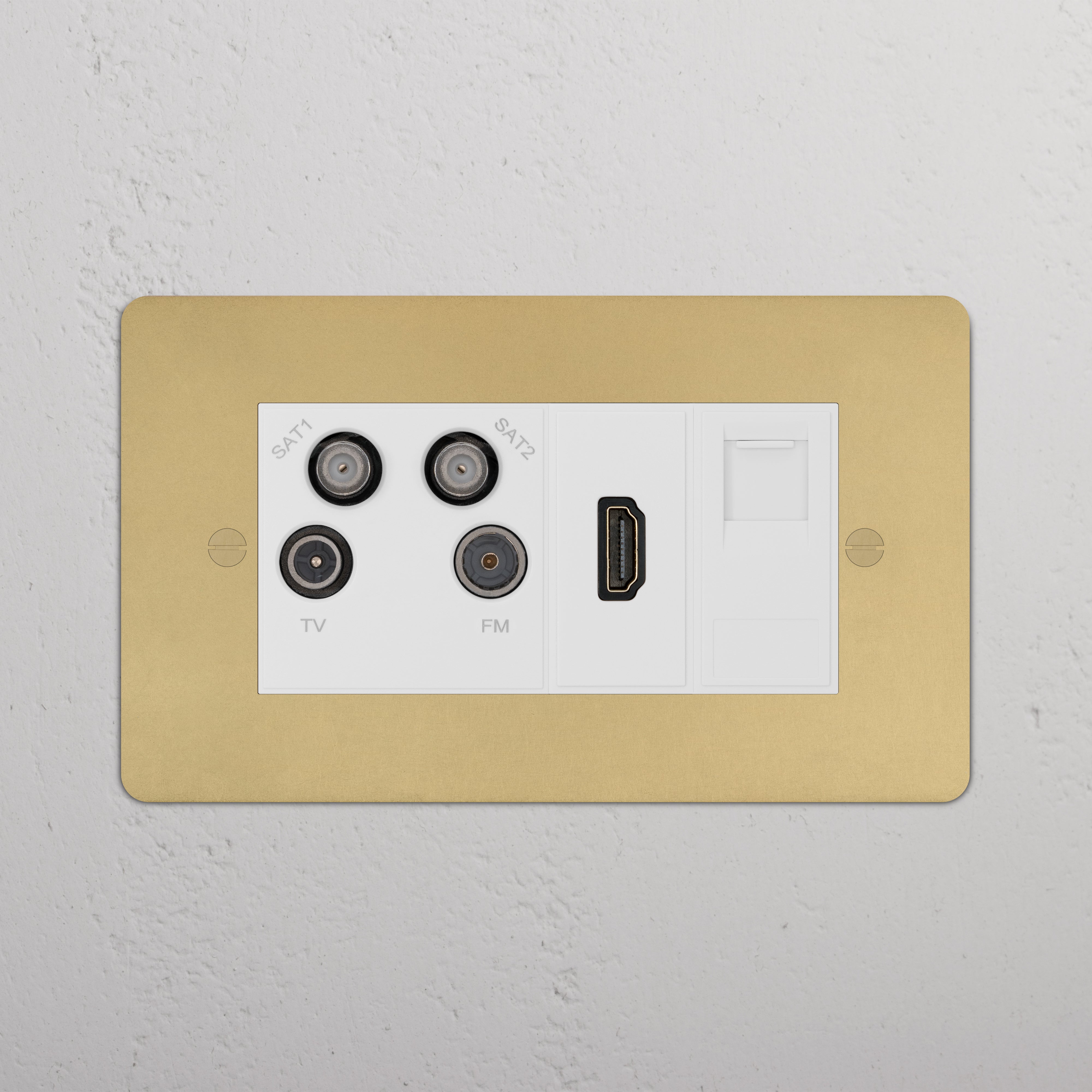 This double mixed socket combines an aerial socket, HDMI and CAT6 socket on one plate and keeps cable clutter to a minimum.