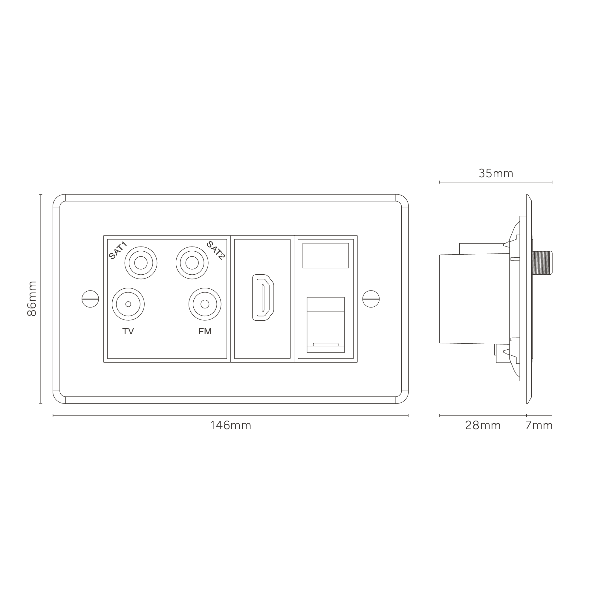 This double mixed socket combines an aerial socket, HDMI and CAT6 socket on one plate and keeps cable clutter to a minimum.