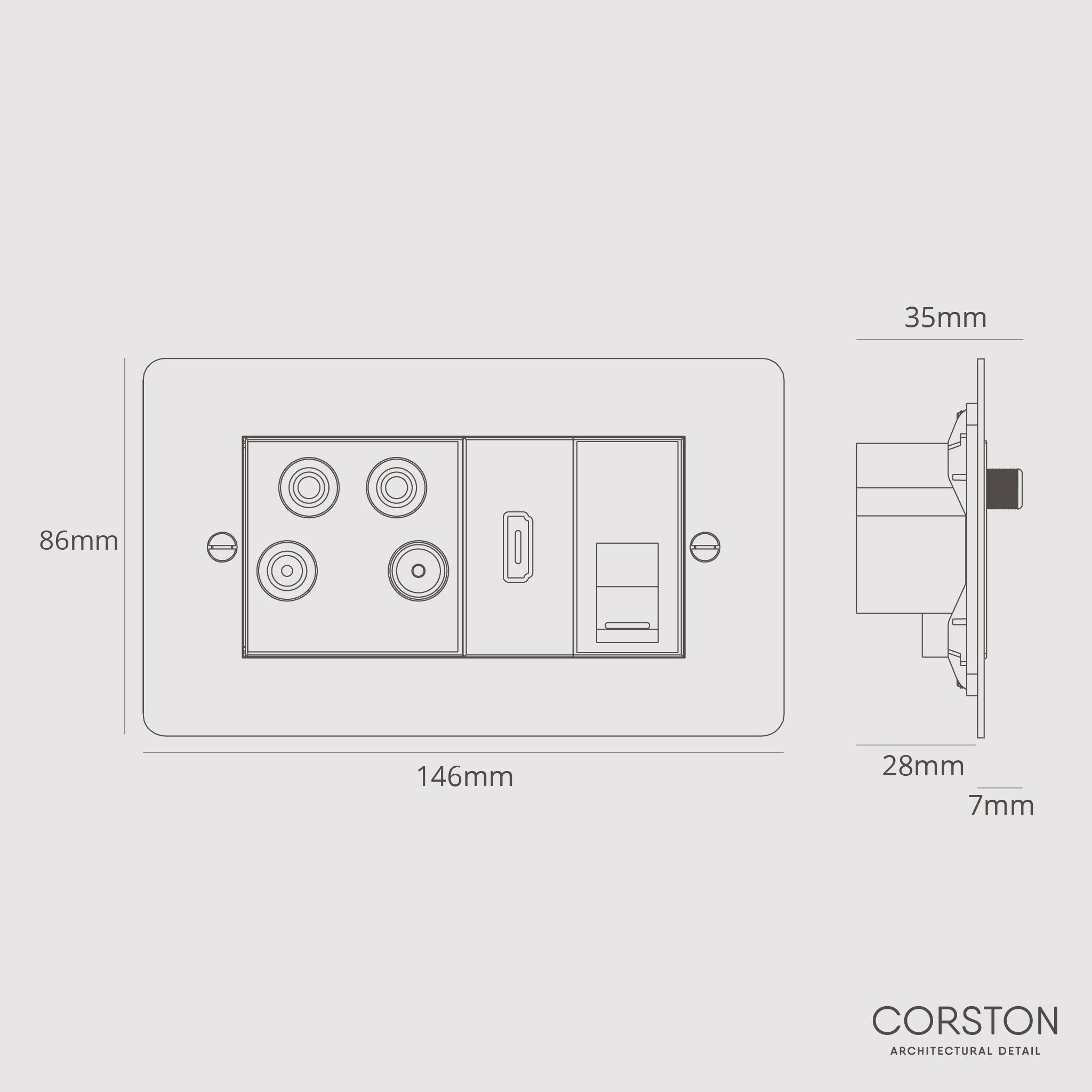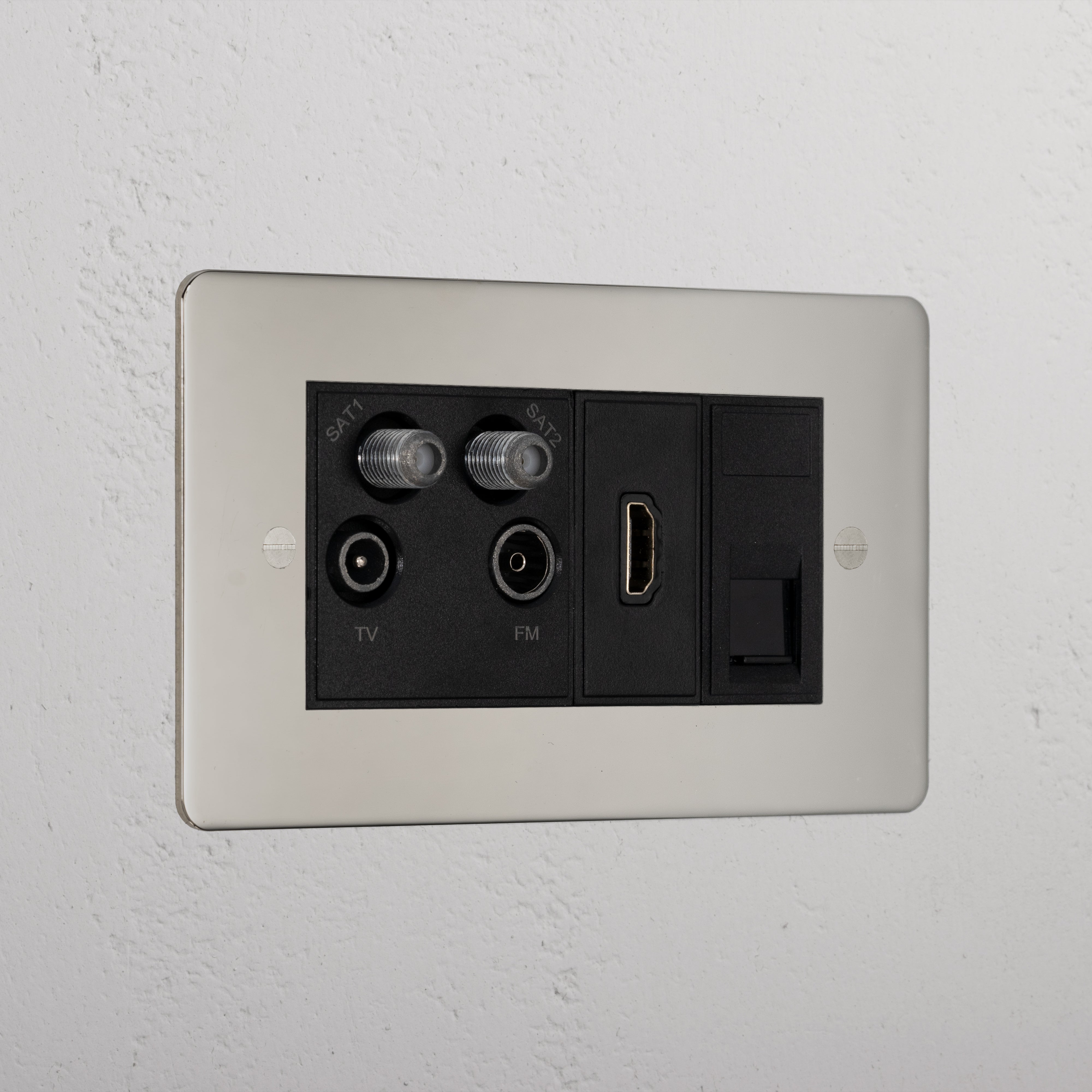 The Cat 6 outlet lets you connect an Ethernet cable for fast internet speeds. Then connect your audio visual systems via the HDMI outlet while keeping cable clutter to a minimum.