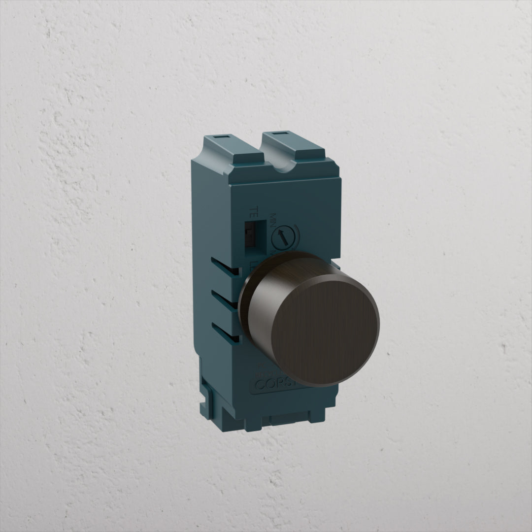 This bronze rotary dimmer switch works with our clear switch plates. It has a collar underneath the rotating knob that hides all the working parts.