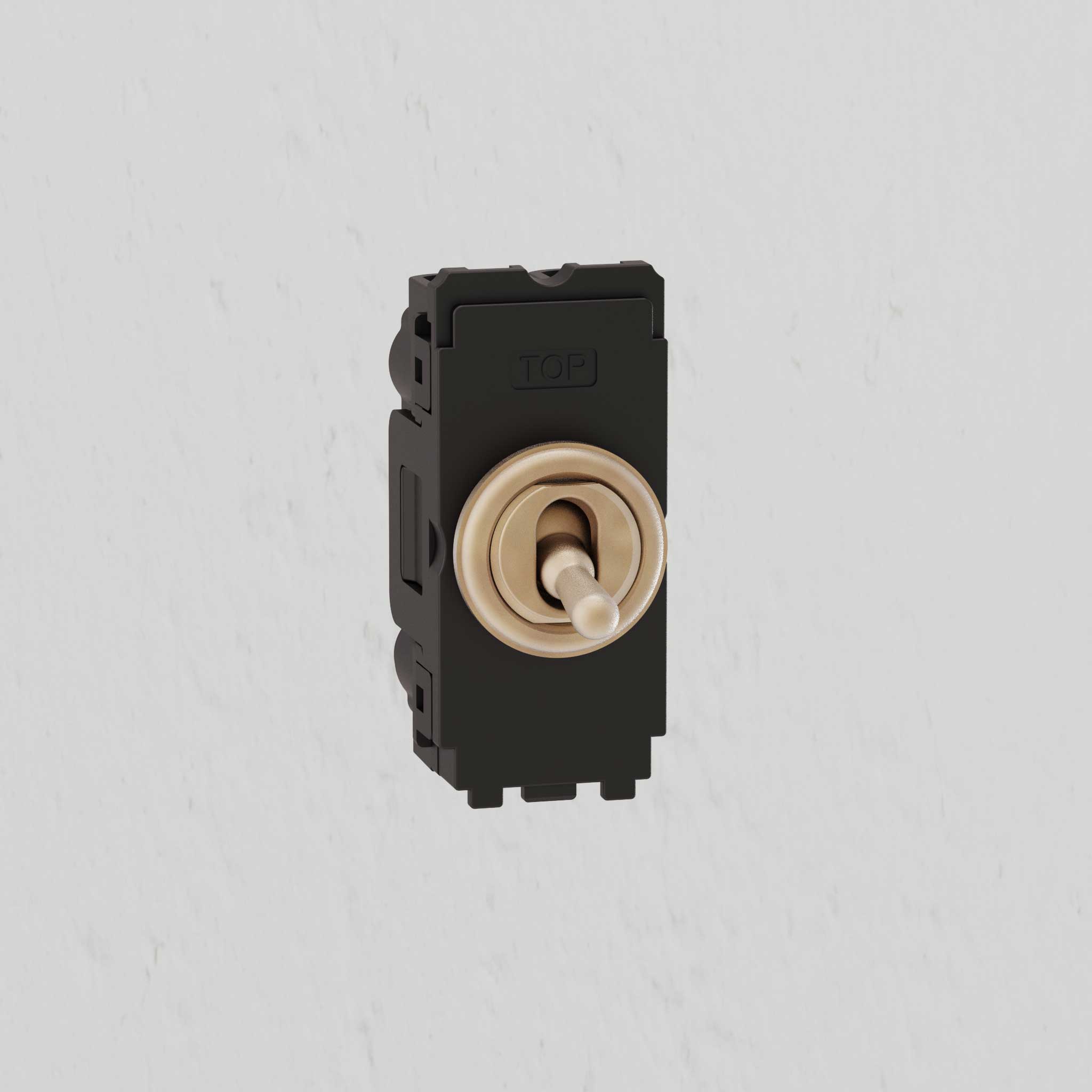 This antique brass two-way toggle switch works with our antique brass, clear and paintable switch plates.