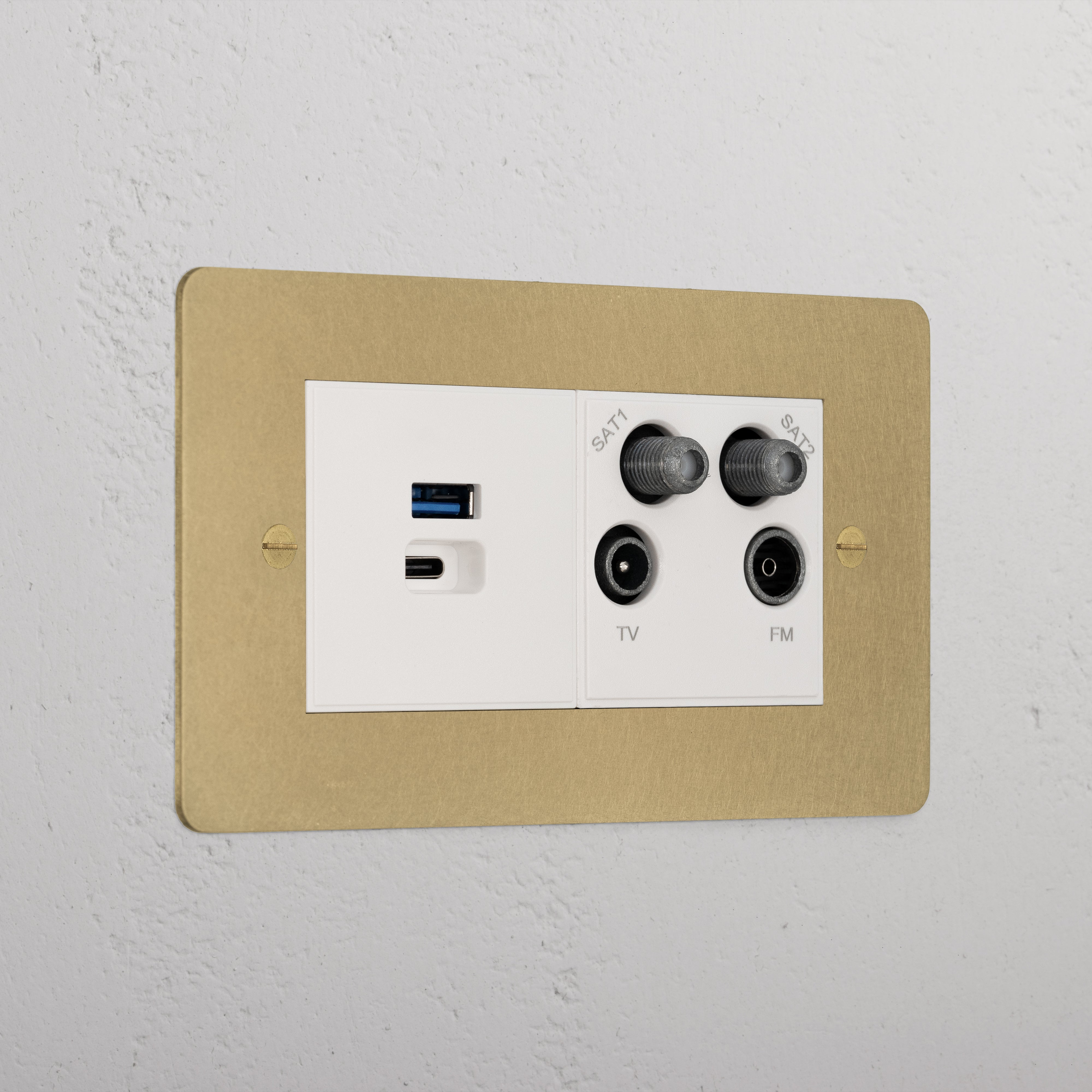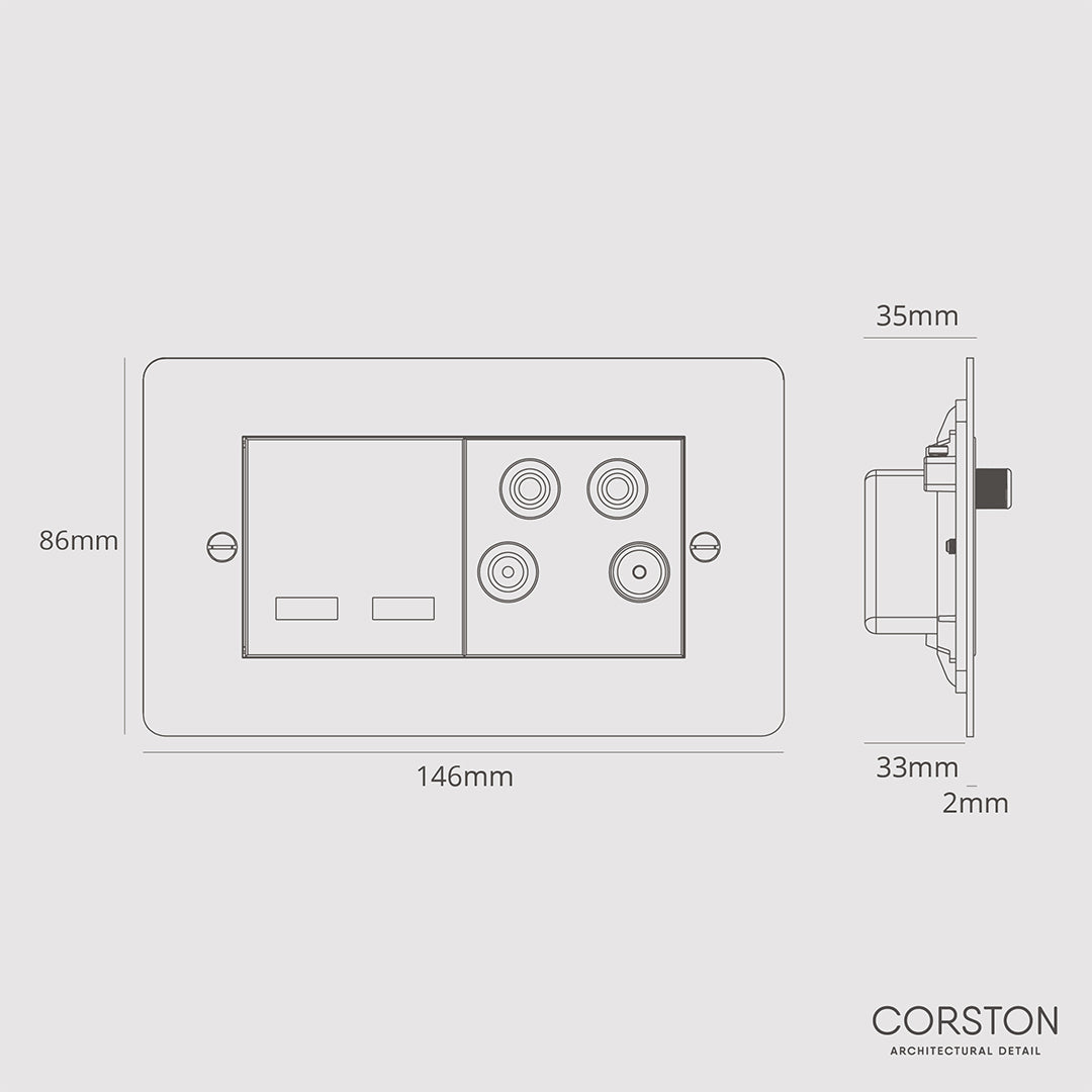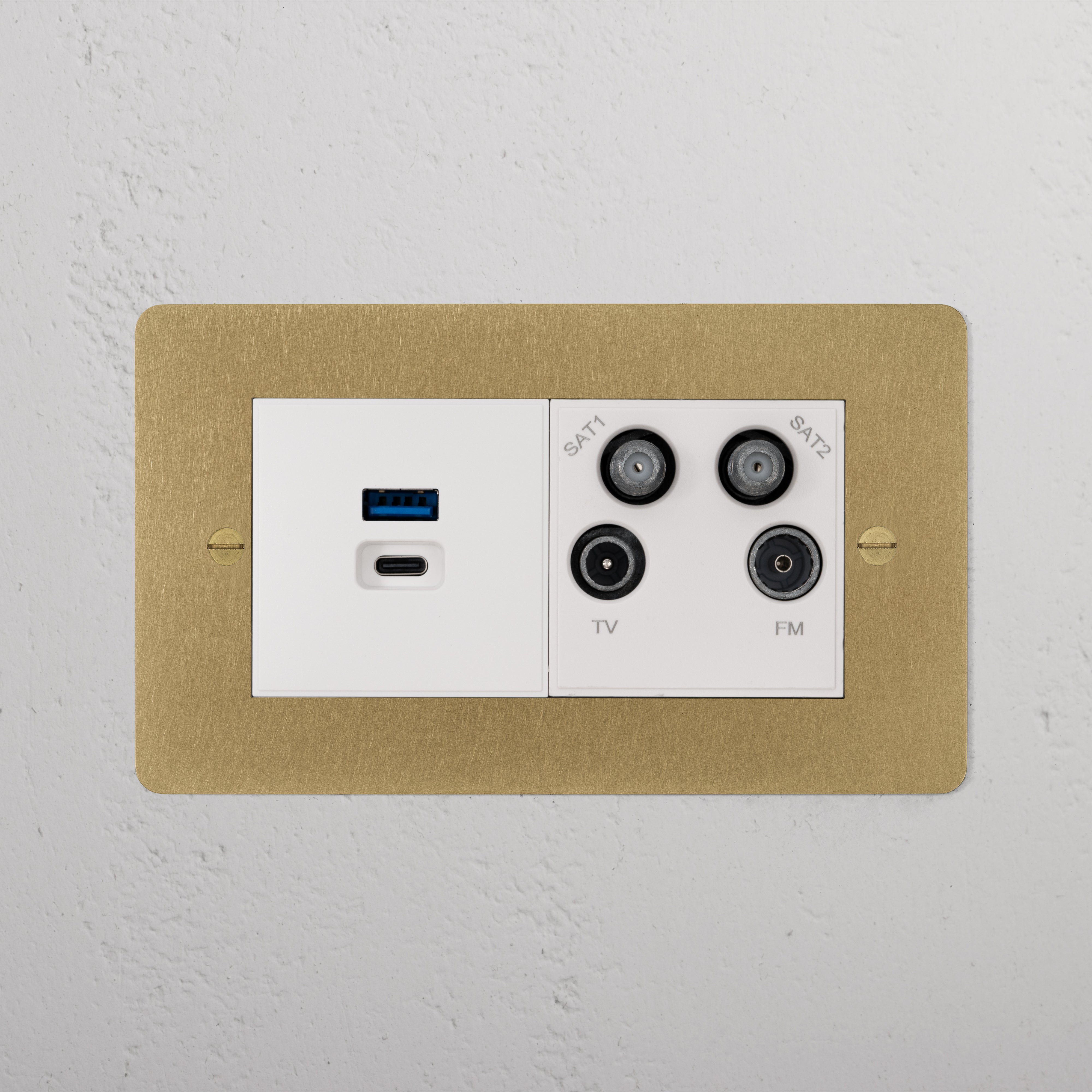 Neatly group two satellite connections, TV and FM aerials with USB A and C charging ports.
