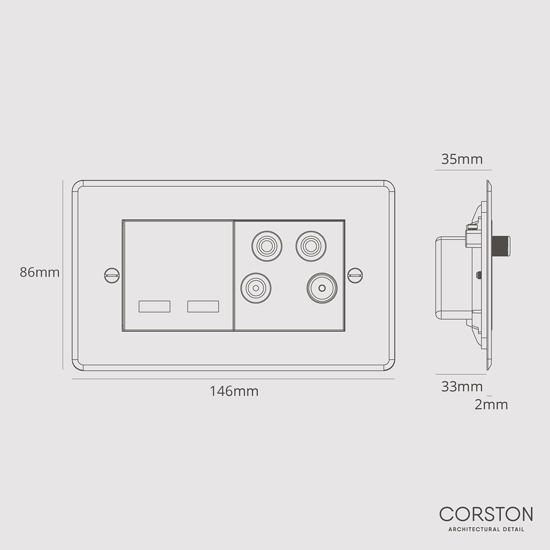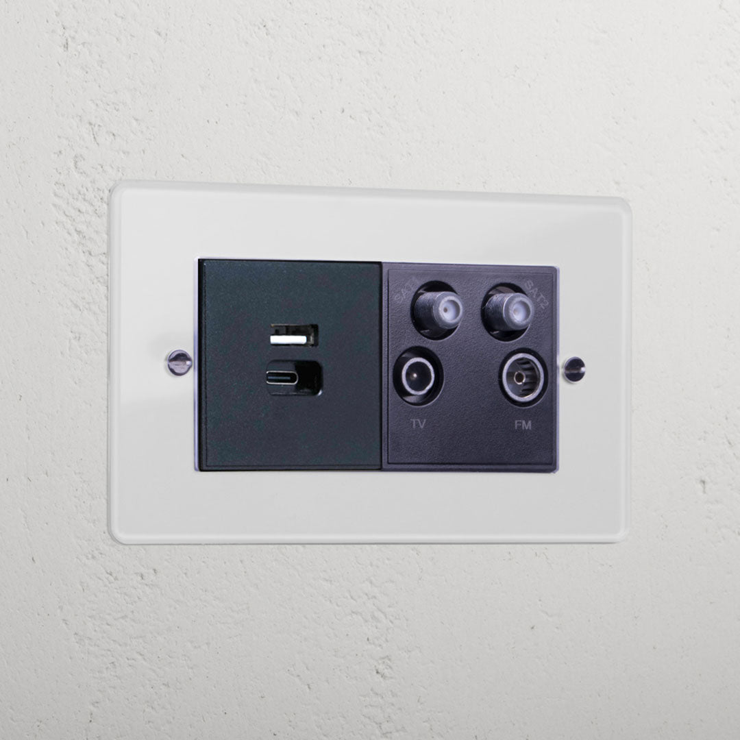 Neatly group two satellite connections, TV and FM aerials with USB A and C charging ports.
