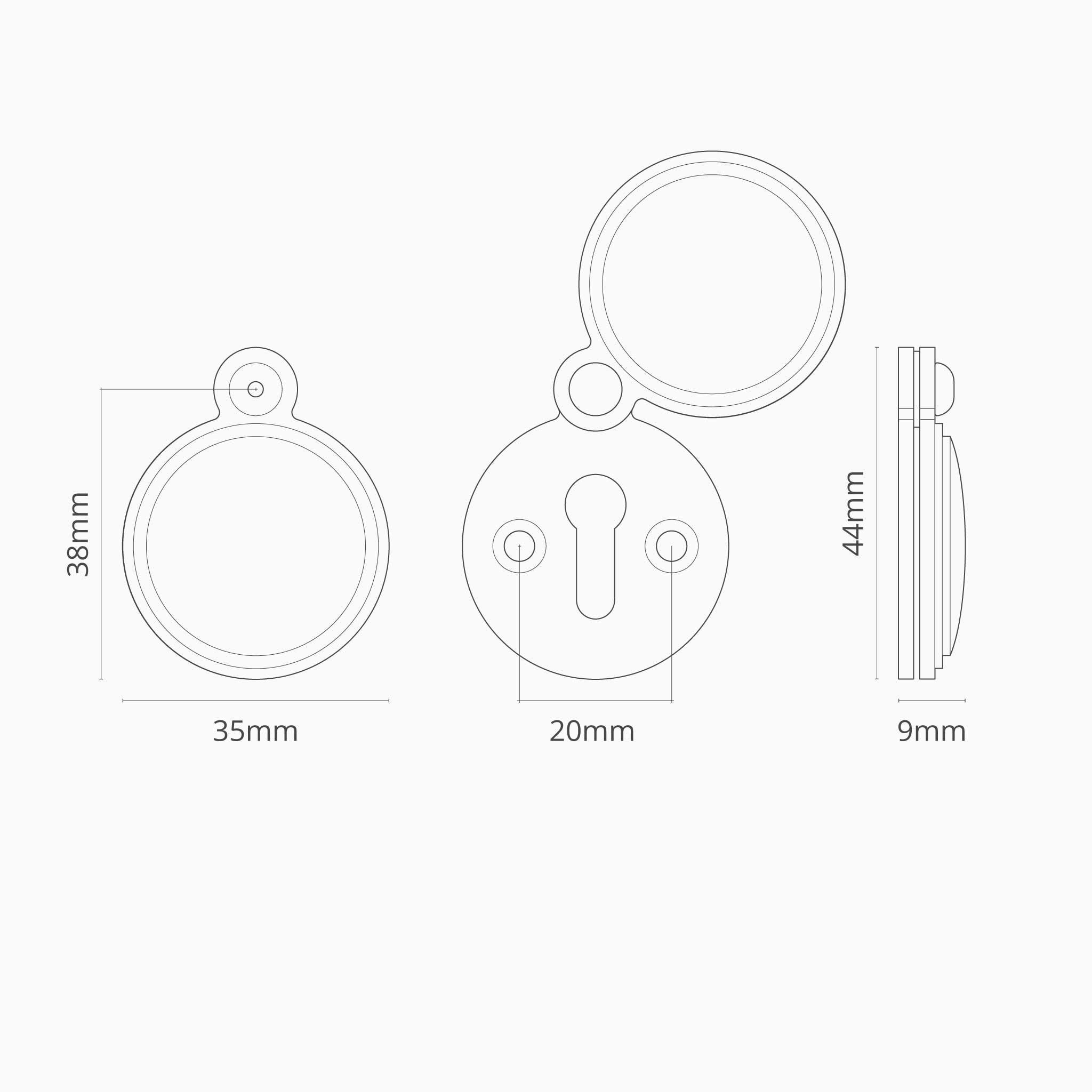 The covered version of our classic Warwick escutcheon will fit seamlessly over standard keyholes.