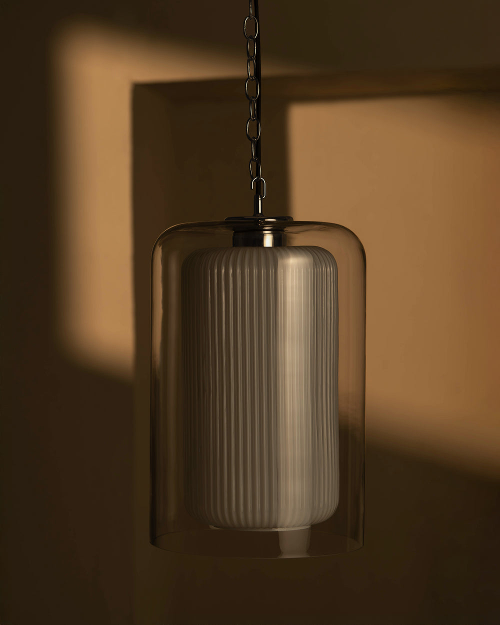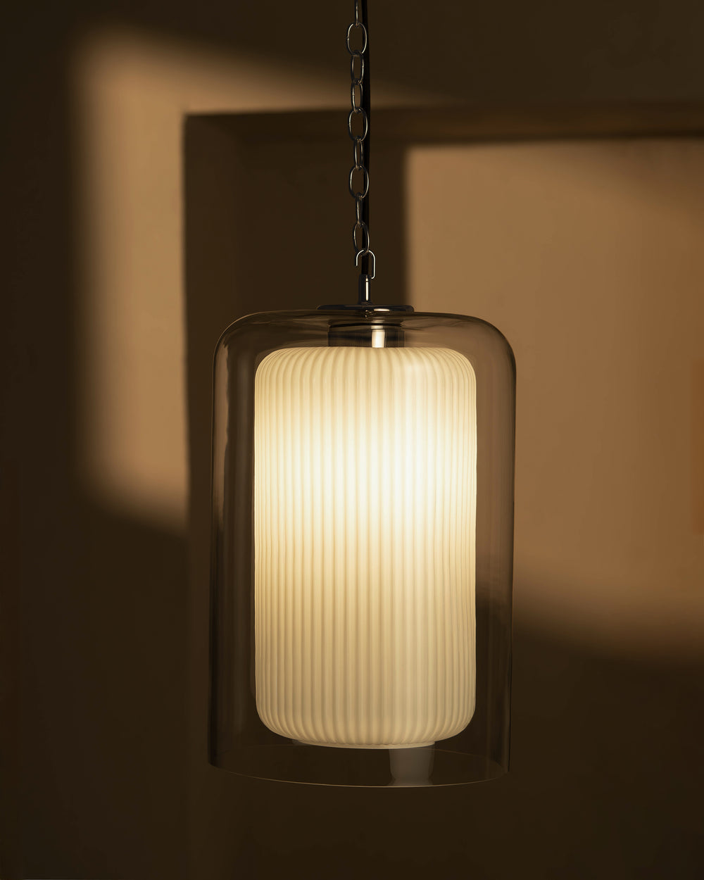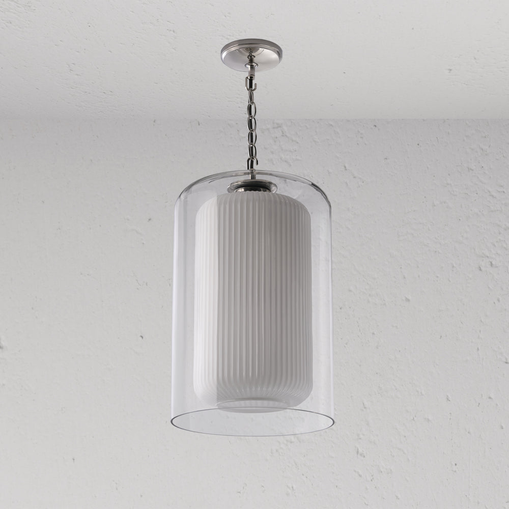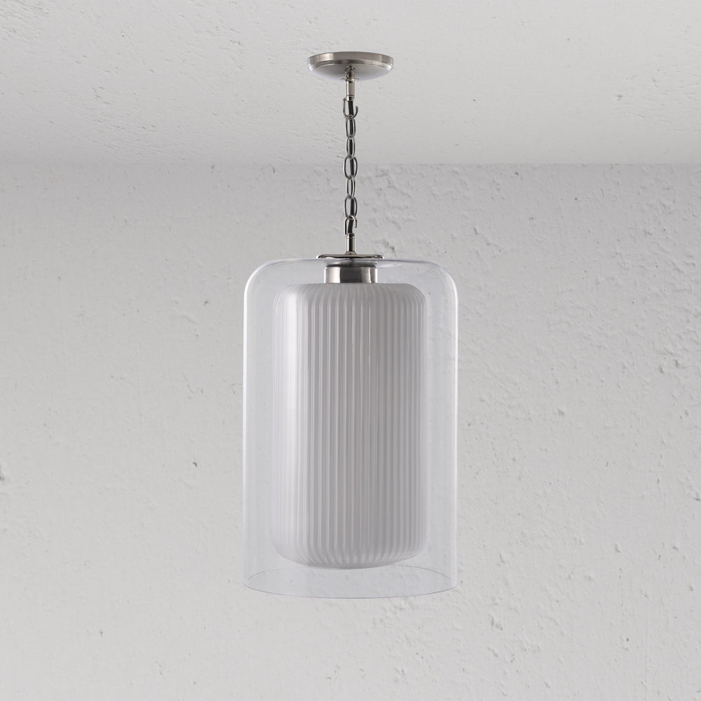 Windsor is our double-layer pendant that combines a fluted opal glass inner and clear glass outer shade.