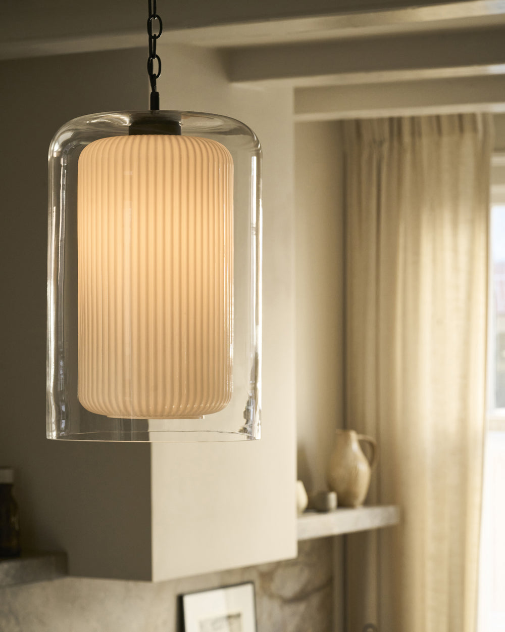 Windsor is our double-layer pendant that combines a fluted opal glass inner and clear glass outer shade.